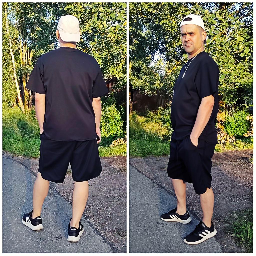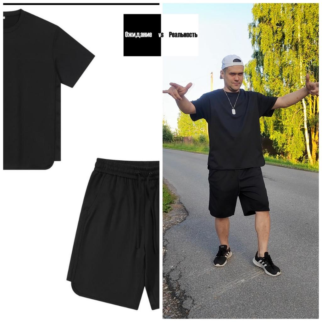 Идеальный мужской костюм на лето! Привет! Мне кажется, что я даже хрюкнула от удовольствия 😂, когда распаковал этот костюм! Девочки, какая это прелестная ткань! Дизайн клёвый! Вообщем идеальный костюм. Муж примерил и сказал: "А почему, только один такой заказала?" 😂 ‼️Добавила не большое видео‼️ Ткань: Просто отдельный вид искусства! Она плотная, имеет особое плетение нитей в мелкую соту, это идеальный вариант для создания ультра - прочно ткани. Такой ткани не страшны стирки, растяжения и затяжки. По составу это качественная спортивная синтетика, ткань дышит в ней не жарко. Ткань не тянется. Дизайн: Костюм состоит из двух предметов: Свободная футболка - плечи спущены, свободные рукава и сбоку добавлен декор в виде пристроченной ткани такой же, как и основная ткань. Шорты - на талии резинка + функциональный шнурок. По бокам глубокие карманы. Качество: Супер! Нюансы: Не нашла. Цвет: Черный Сезон: Весна/лето/осень Размер: На муже 2XL Его параметры : рост 180 см 102/101/111 см Детали: Футболка: Длина 75 см Плечи 56 см Длина рукава 21 см ОГ 126 см От 118 см Шорты: Длина 58 см От 84 до 118 см ОБ 132 см Резюмирую: Это брать НЕ думая! Очень крутой костюм сшит безупречно и сидит ну просто супер! Берите не пожалеете! Рекомендую 👍 Я не прощаюсь, M_K Мужская_звезда