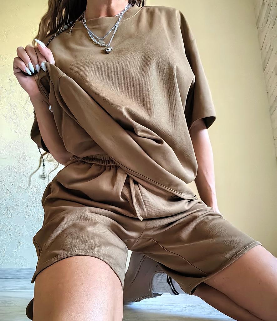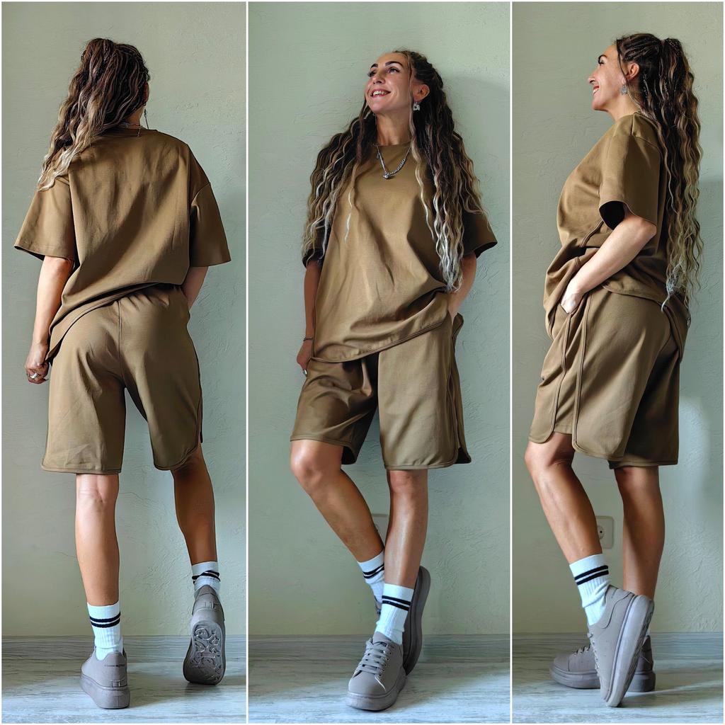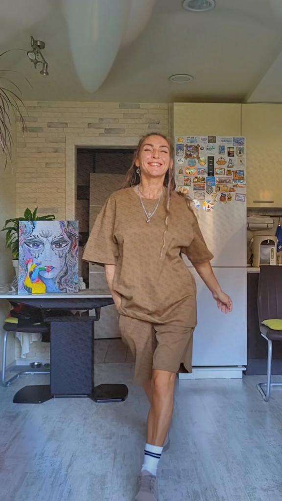 Костюм футболка и шорты цвет хаки 🟩🟫 Всем солнечный приветик 👋😉 Просто мега классный и качественный плотный костюм 💣 Купила костюм для Ванюши, но его будет носить мой папуля 🥰 Папе настолько понравился костюм, что сразу после примерки заказала ему второй в серо-бежевом цвете и на размер меньше 🤩 А папуля у меня капризный и ему угодить сложно, но тут случилась любовь с первого взгляда 🔥 Уверена, что костюм унисекс и его может носить как парень, так и девчонка 🥰 Как невысокие, так и высокие 🤎 Заказала размер XL. На нём сел костюм очень-очень свободно. На папуле тоже с запасом. Специально померила для Вас этот костюм и на мамуле, чтобы Вы понимали, что этот размер сел и на 54 размер, но уже по фигуре 😉 Мои параметры: 🎗 рост 160см 🎗 вес 56кг 🎗 длина плеч 40см 🎗 объём груди 93см (75D) 🎗 объём талии 63см 🎗 объём бёдер 93см. Мамулины параметры: 🎗рост 157см 🎗вес 78кг 🎗длина плеч 42см 🎗объём груди 113см 🎗объём талии 98см 🎗объём бёдер 113см. Папулины параметры: 🎗рост 172см 🎗вес 65кг 🎗объём груди 102см 🎗объём талии 85см 🎗объём бёдер 96см. Качество: 🟩 ткань смесевая, но хлопок основная ткань 🟫 ткань плотная и держит форму 🟩 ткань немного тянется 🟫 не светит 🟩 футболка свободного кроя 🟫 рукава широкие 🟩 шорты на талии на широкой резинке плюс шнурок-утяжка 🟫 карманы глубокие и вместительные 🟩швы ровные 🟫 качество отличное. Точные замеры костюма. Футболка: 📏 ОГ - 120см 📏 объём низа футболки - 116см 📏 длина футболки от плеча - 72см 📏 длина плеч - 56см 📏 длина рукава от воротника - 40см 📏 длина рукава от плечевого шва - 22см 📏 объём рукава у плечевого шва (пройма) - 56см 📏 объём манжеты - 40см. Шорты: 📏 ОТ - 80 - 102см 📏 ОБ - 129см 📏 длина шорт - 54см 📏 длина штанины по внутреннему шву - 23см 📏 объём штанинины - 72см. Мы все костюмом довольны очень-очень и рекомендуем его всеми ручками 💞🤗💞 Спасибо, продавцу и Джуму 😘😘😘 Чмок-чмок-чмок, всех кто со мной на Джуме 60 тысяч раз 😘😘😘😘😘 Желаю удачных покупок 🛍😊 терпения 🤗 и весны в душе 🌈☀️🌱🦋🌼💕🐞🌳🕊 До скорого 🙌😊 Песня во втором видео: NLO "Любовь" (Andy Shik Remix) 🎶💃🎶