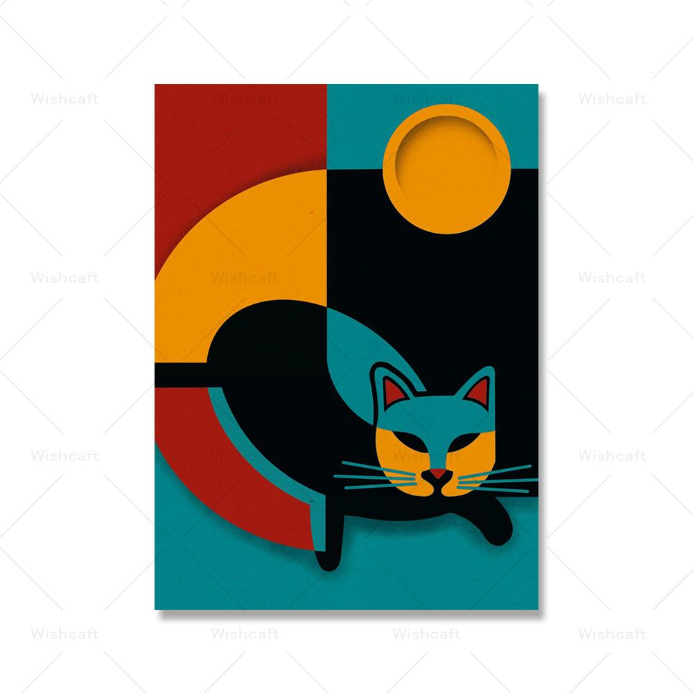 Геометрические Баухаус кошки художественные постеры и принты Современная абстракция Vinatge Искусство Холст Картина Настенная картина украшение дома