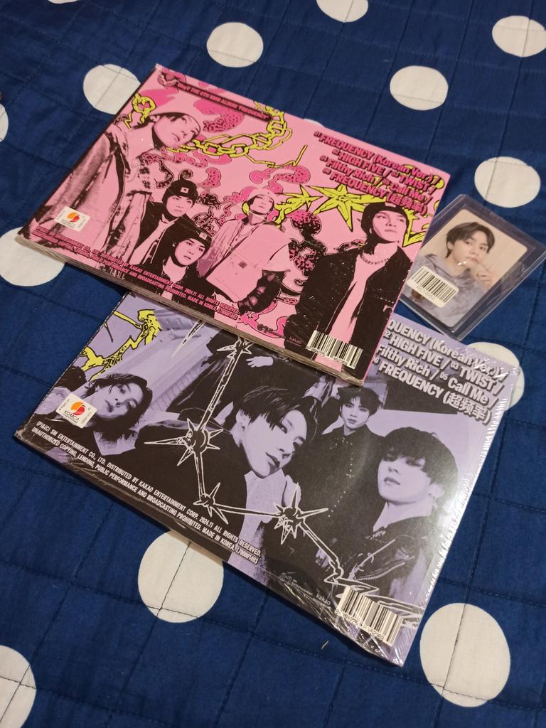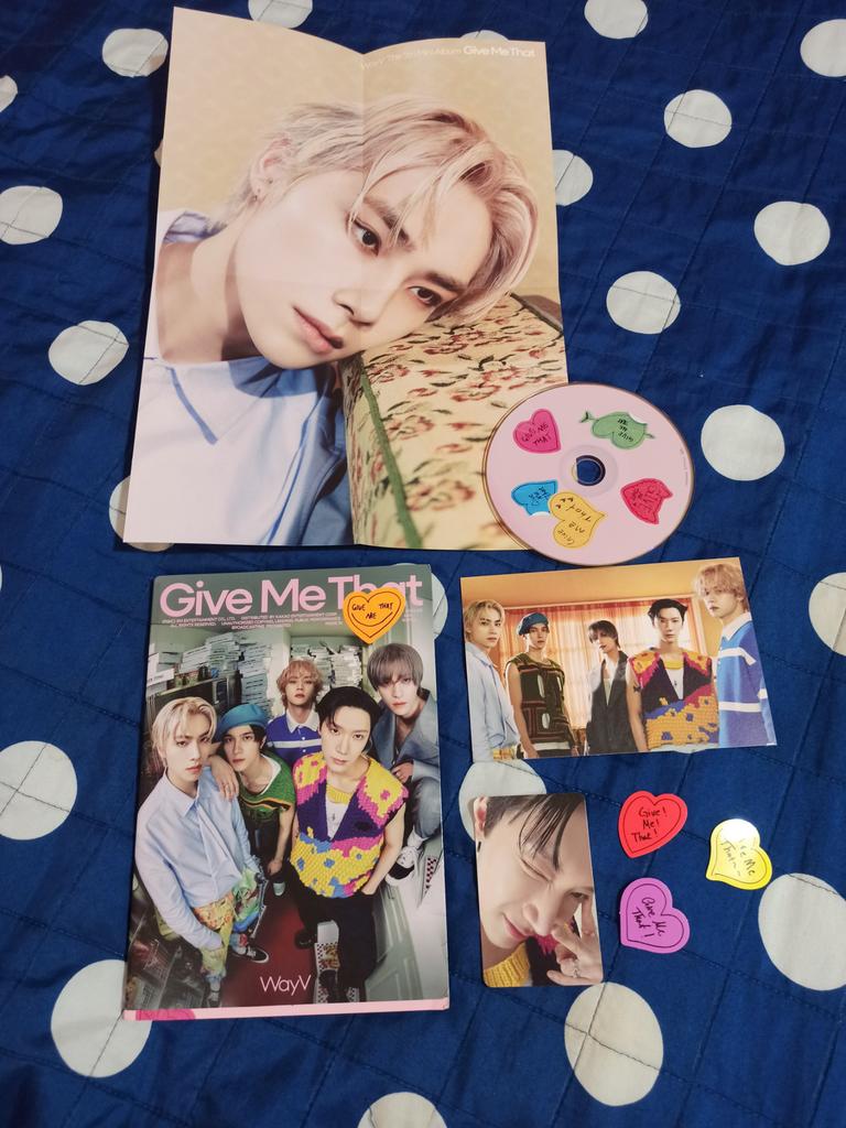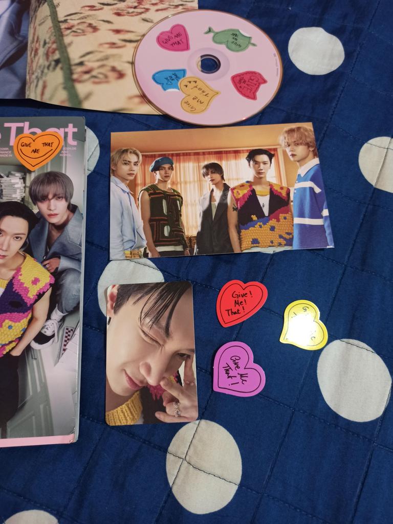 Прислали "frequency" вместо "give me that".. от "give me that" только подарочная карточка с Куном, которой я была несказанно рада. А так, "frequency" у меня уже есть обе версии с фотобуком.. Карточкам с Сяоджуном и Теном тоже рада, но хотела сет "give me that".. 😔 Джум вернул все деньги..