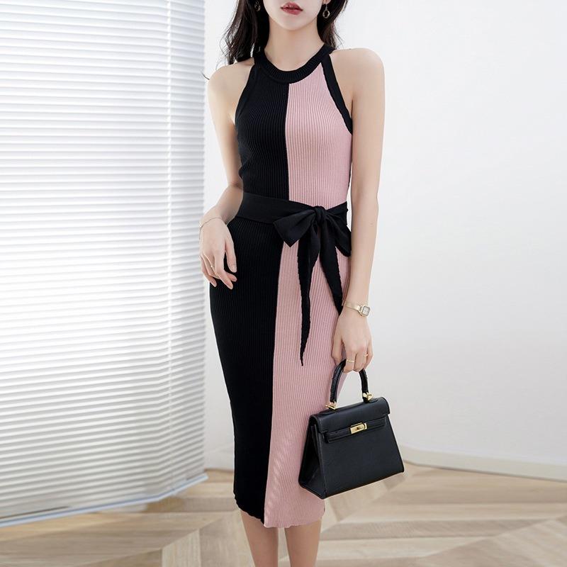 Женские летние жаккардовые вязаные платья с эластичной посадкой, стройнящие, с лоскутным дизайном и завязками — купить товар онлайн с бесплатной доставкой по всему миру!