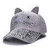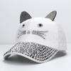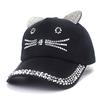 Детская кепка с ромбовидной инкрустацией, простая простая бейсболка, женская регулируемая повседневная уличная уличная кепка, модная шляпа с котом