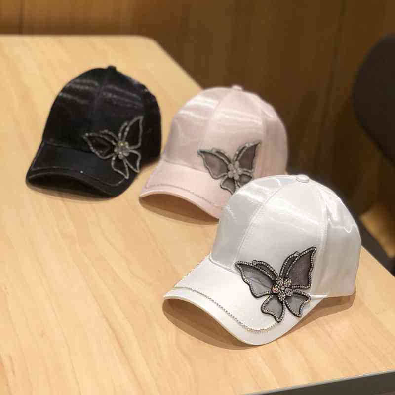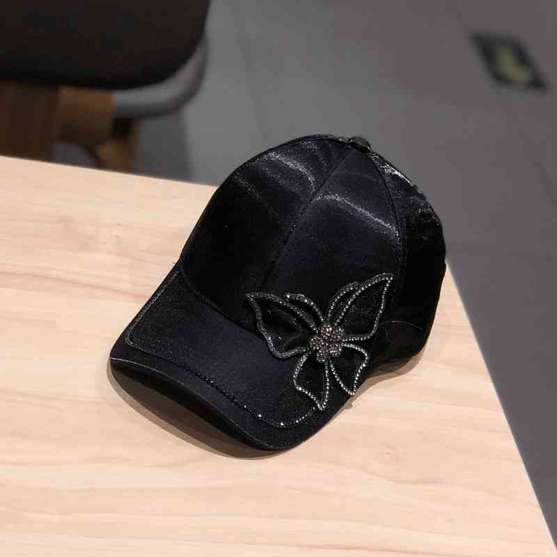Модная бейсбольная кепка со стразами и бабочками, женская летняя шелковая атласная кепка от солнца с козырьком, регулируемая женская бейсболка для отдыха, кепки Snapback