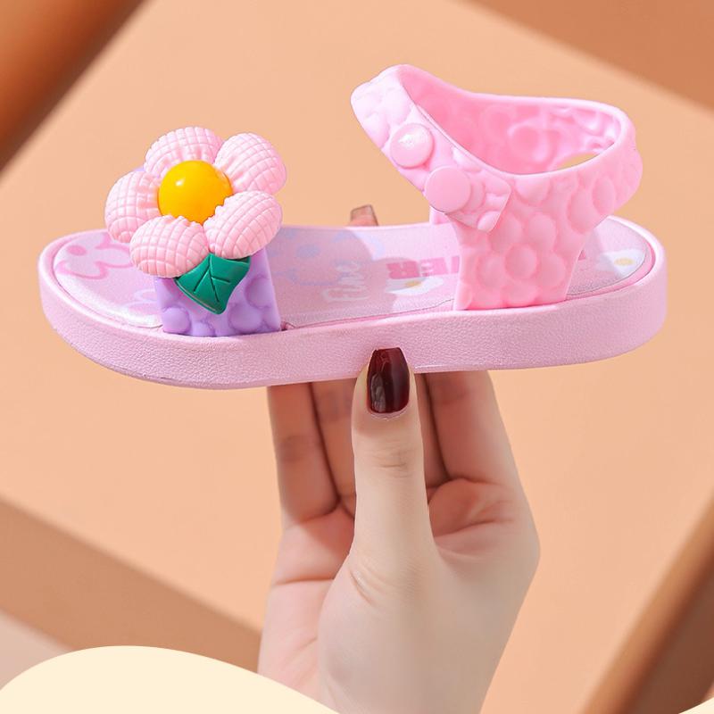 Новые сандалии для девочек, нескользящие, дышащие, радужного цвета, милые, для маленьких принцесс, пляжная обувь, детские сандалии