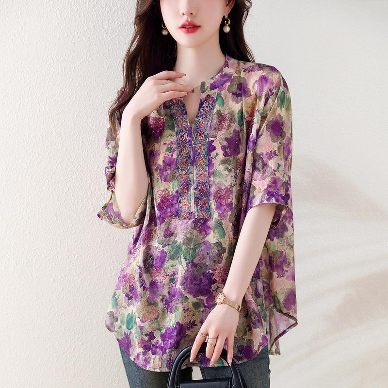 Летняя женская рубашка с коротким рукавом и v-образным вырезом, уменьшающая возраст, с принтом, с защитой от солнца