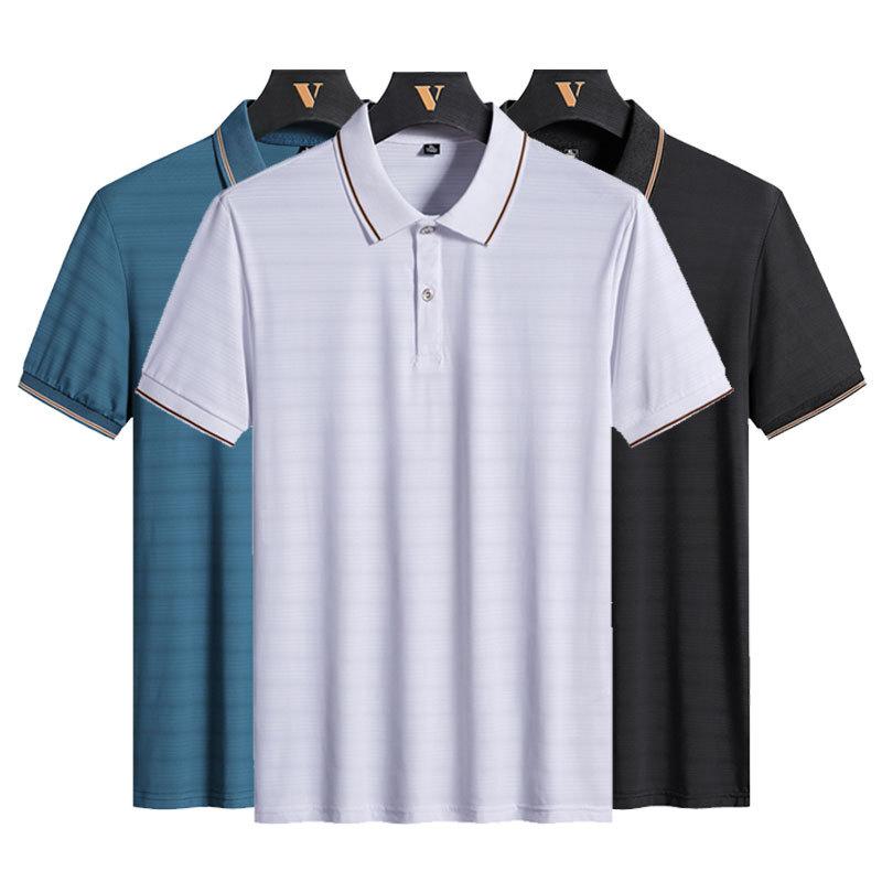 Ледяная шелковая футболка с короткими рукавами, мужская футболка-поло, летняя тонкая однотонная повседневная мужская футболка с откидным воротником, большая футболка с половиной рукавов