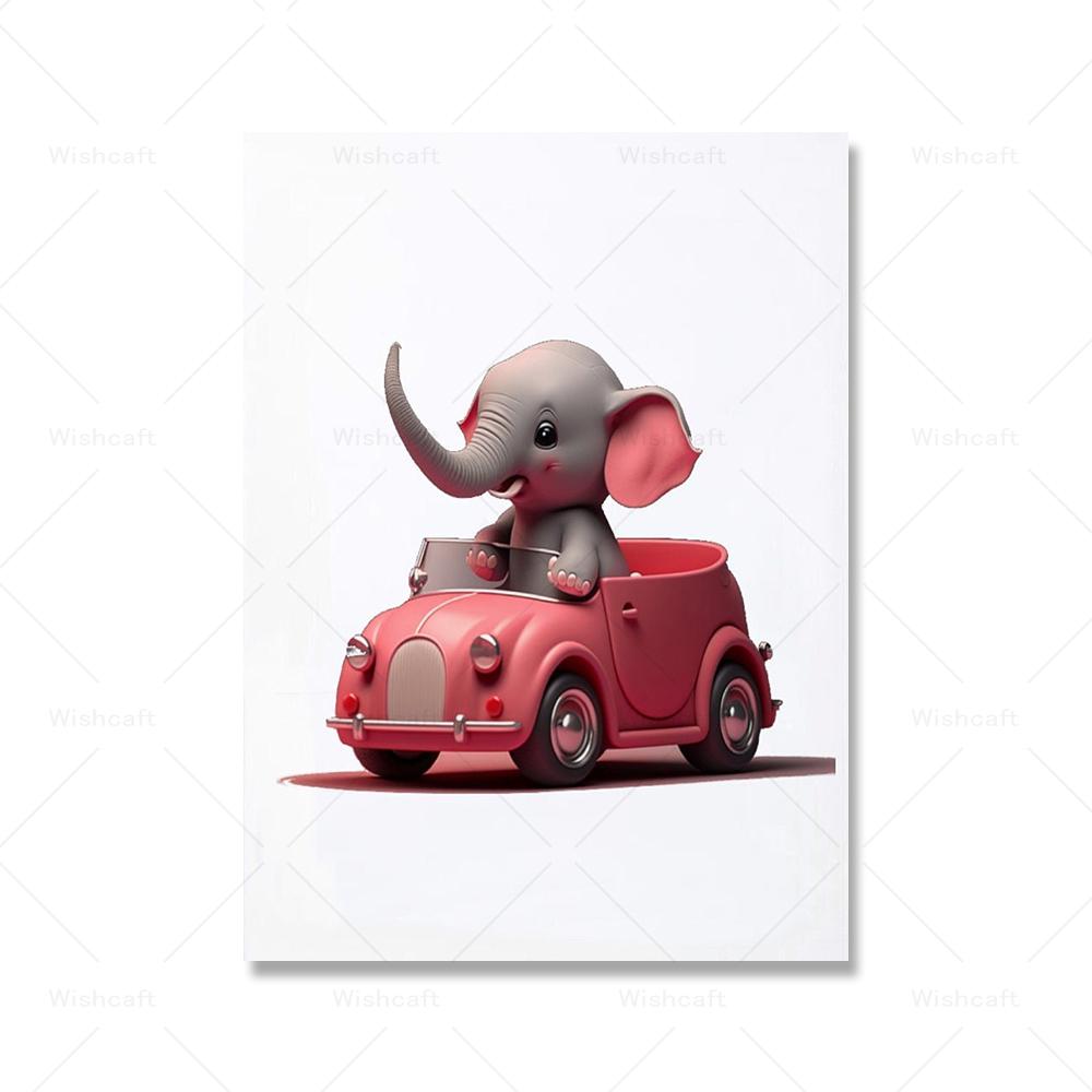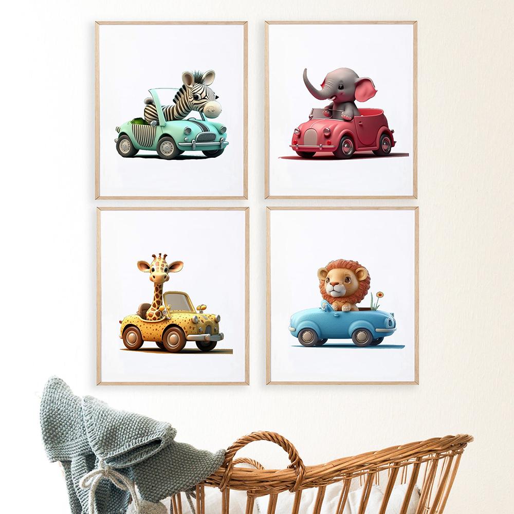 Животные в транспортных средствах, Настенный декор, животные, автомобили, принты, детская, милые сафари, животные, холст, постер, подарок для ребенка, фотографии, декор для детской комнаты