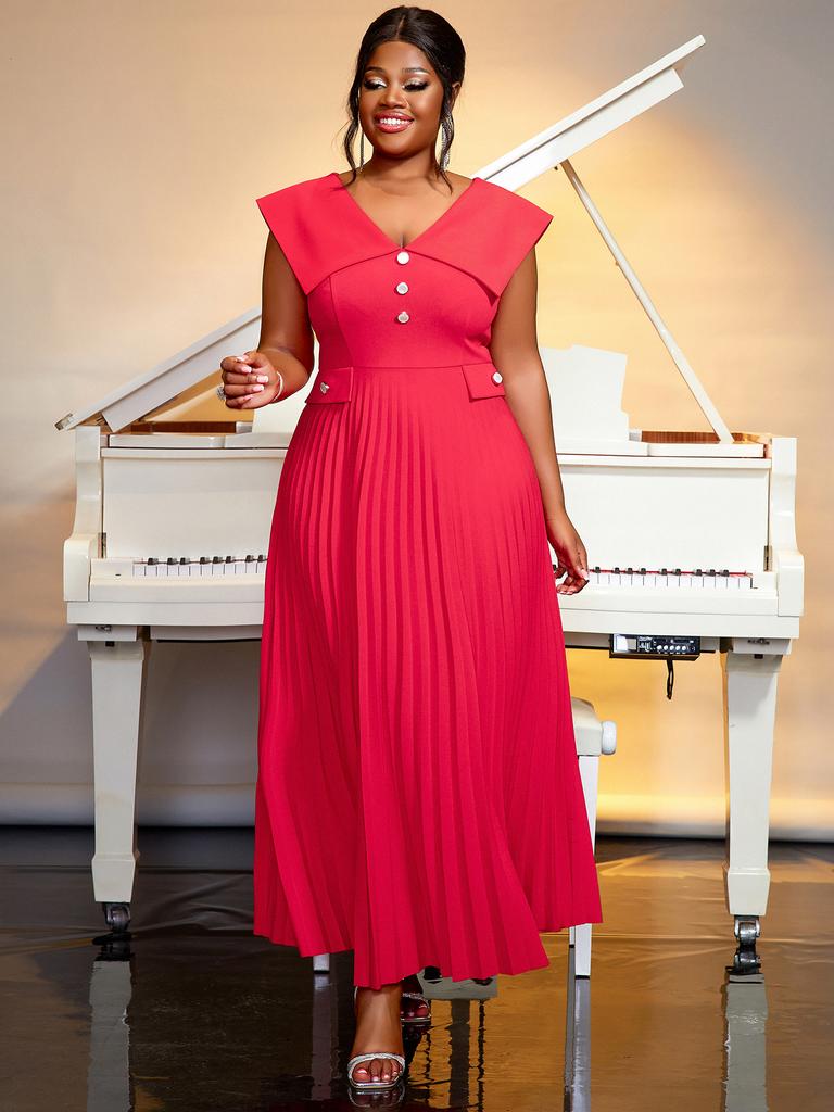 AOMEI Красные плиссированные платья без рукавов с V-образным вырезом и высокой талией, трапециевидные женские повседневные вечерние платья