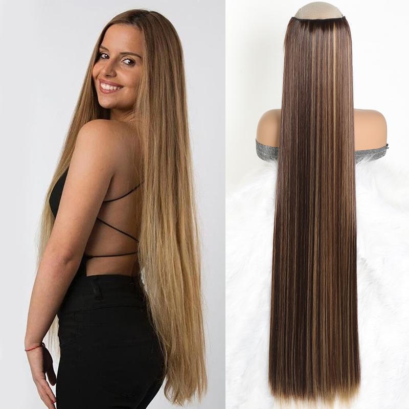 40-дюймовые наращивания волос на заколках для наращивания волос, синтетические 5 зажимов, цельные наращивания волос для женщин