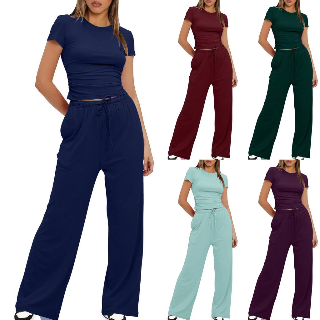 2 куска наряды:В этот комплект входят супермягкие футболки с короткими рукавами и широкие длинные брюки, которые идеально подходят для повседневного ношения. Этот комплект из двух частей создан, чтобы подойти любому телу и его можно носить в течение следующих сезонов! Наш комплект из двух предметов — идеальный выбор для создания уютного мгновенного наряда. Он сочетается с широкими брюками свободного кроя. Этот комплект станет незаменимым элементом любого гардероба. Этот комплект легко сочетается друг с другом.