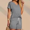 Женские футболки, футболки, шорты, комплекты с графикой, повседневные однотонные комплекты с V-образным вырезом, стандартная посадка