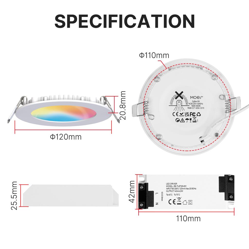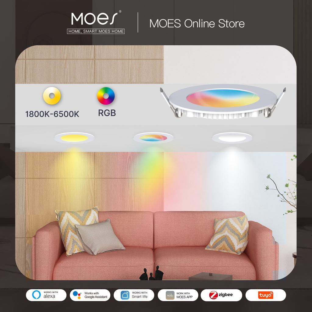 Через приложение MOES вы можете регулировать яркость цветовой температуры от 1800K до 6500K.