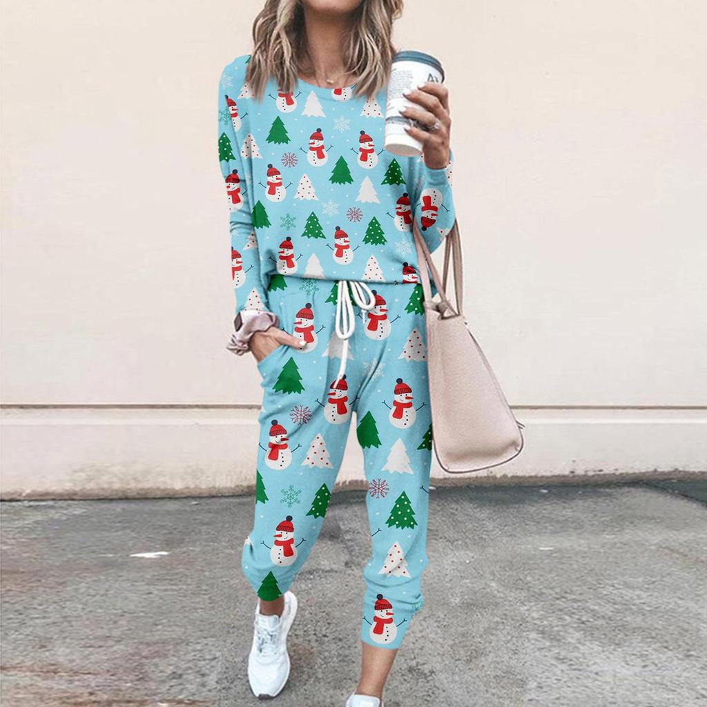 Наборы для женщин, комплекты из 2 предметов, рубашки с длинными рукавами и круглым вырезом, спортивные штаны на шнурке, карманные комплекты