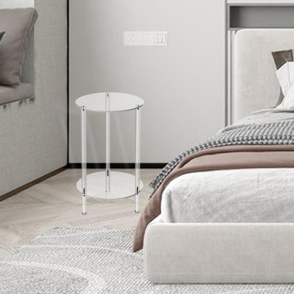 - 【Универсальный акриловый круглый приставной столик】: Эта небольшая двухъярусная прикроватная тумбочка отлично подходит для вашей гостиной, спальни или прикроватной тумбочки.. Украсьте свой домашний декор нашим минималистичным современным акриловым столиком для напитков.