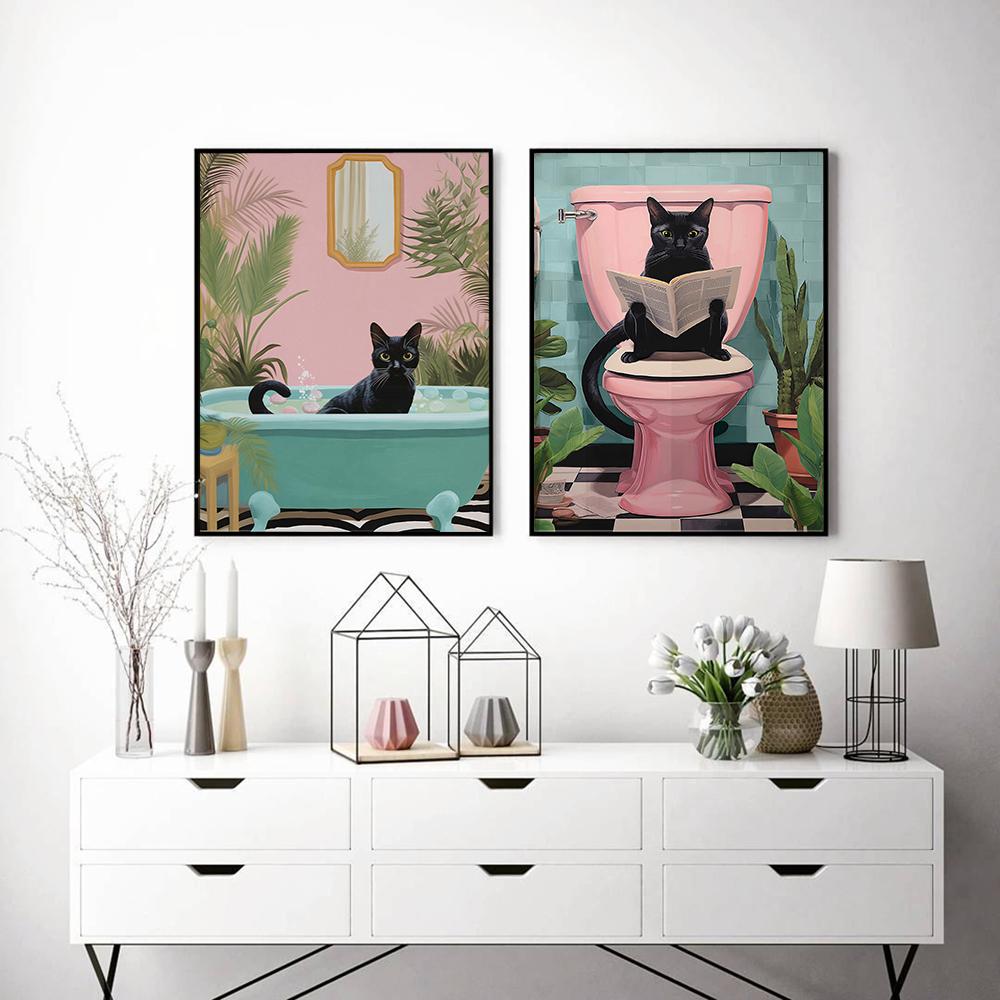 Современные плакаты с животными и кошками, украшение для дома, забавные принты на холсте для ванной комнаты, милые черные кошки, художественная роспись, настенные панно, декор для туалета