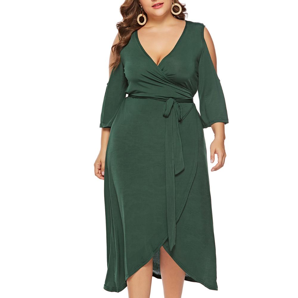 Однотонное повседневное платье для женщин. Летнее платье с v-образным вырезом и вырезом. Длинное платье с высокой талией и галстуком. Дышащее платье с крестом и нерегулярной формой. Легкое удобное платье размера плюс.