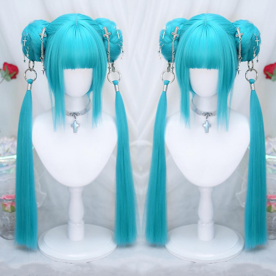 DIY аниме синтетический короткий прямой зеленый парик двойная петля для волос двойная коса хвост натуральный короткий прямой парик для женщин — купить товар онлайн с бесплатной доставкой до всему миру!