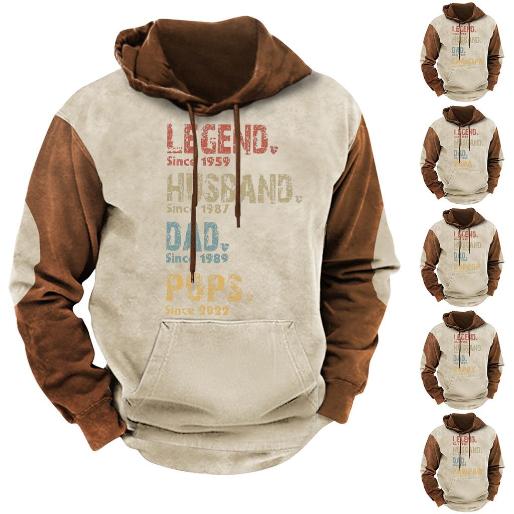 Мужской осенне-зимний свитер контрастного цвета с длинными рукавами и капюшоном, свободный пуловер с капюшоном
