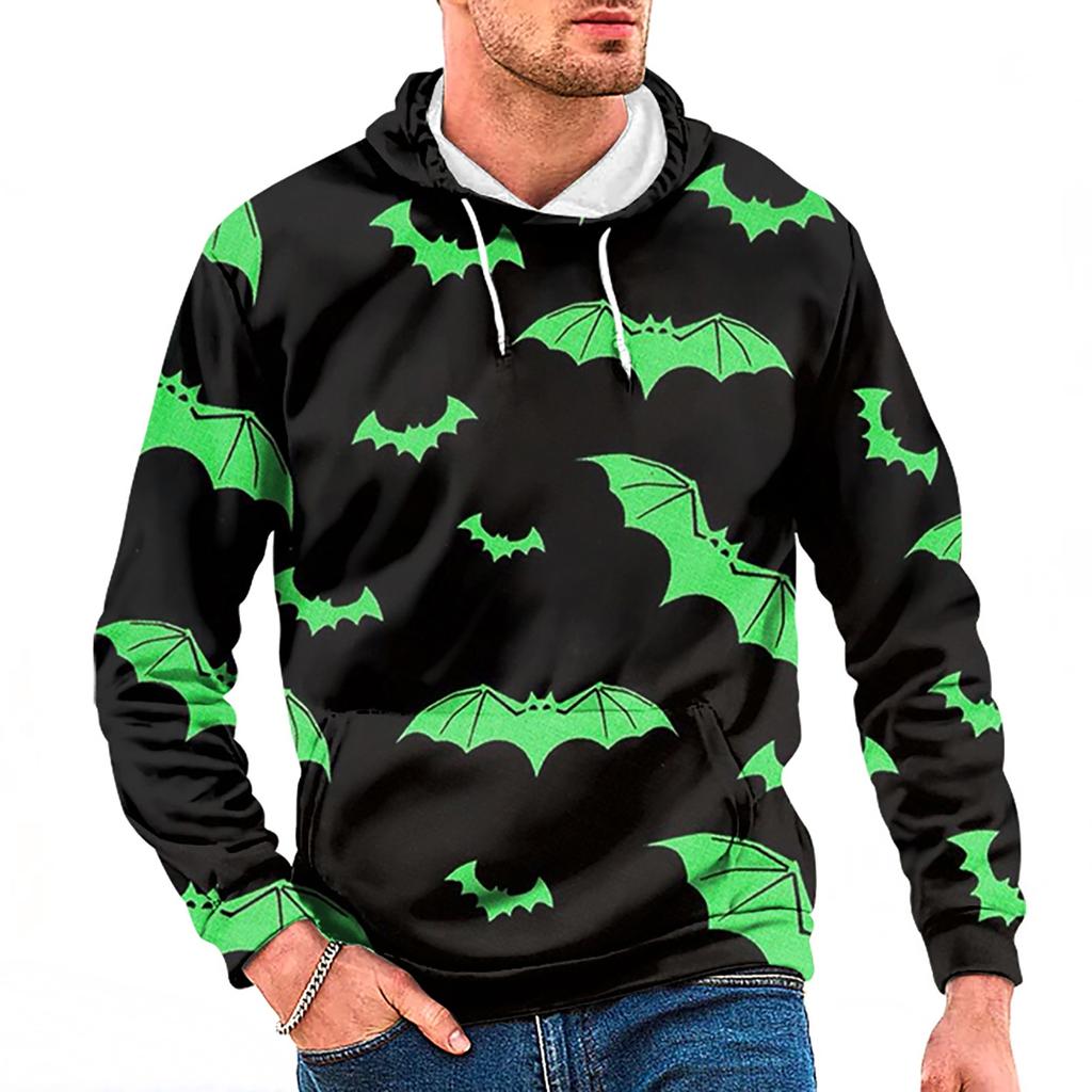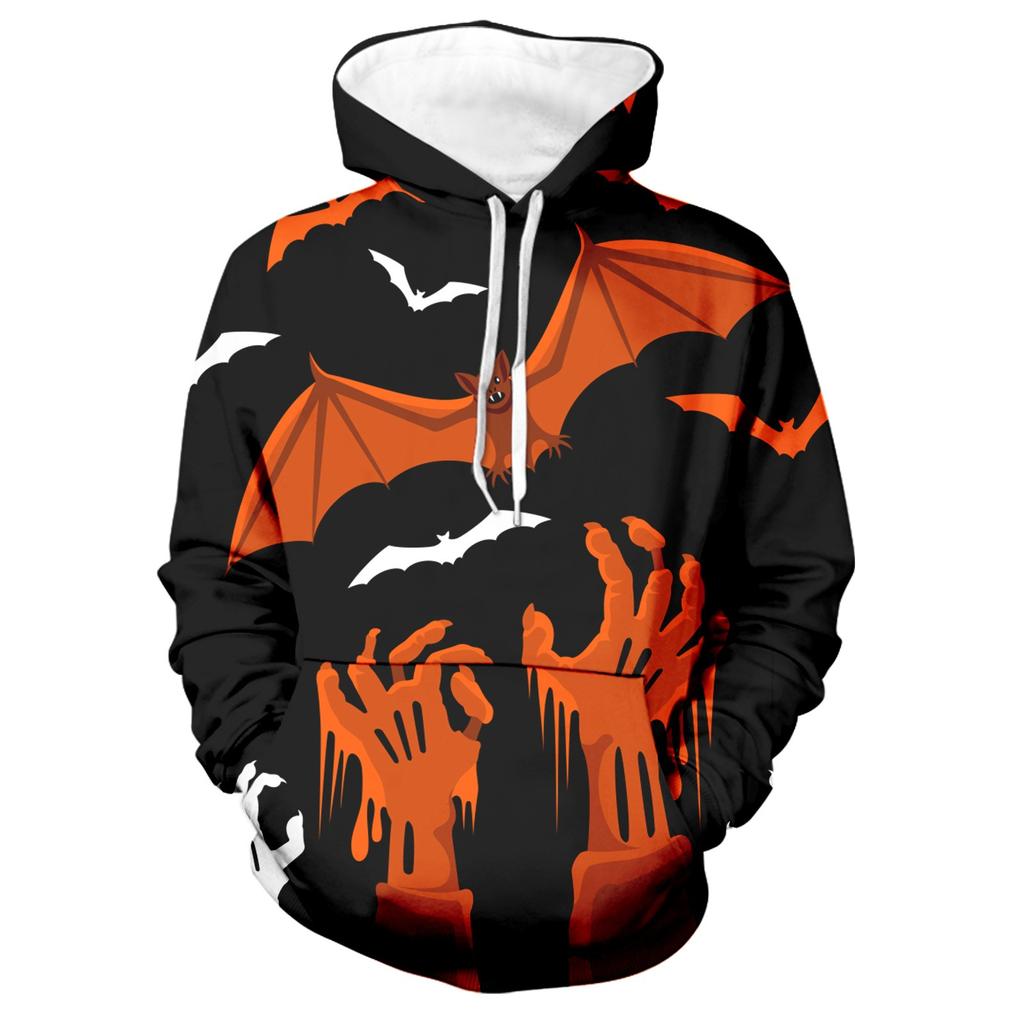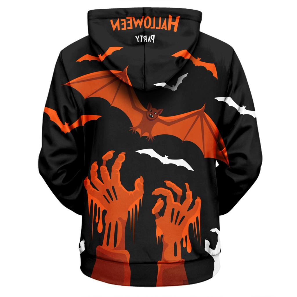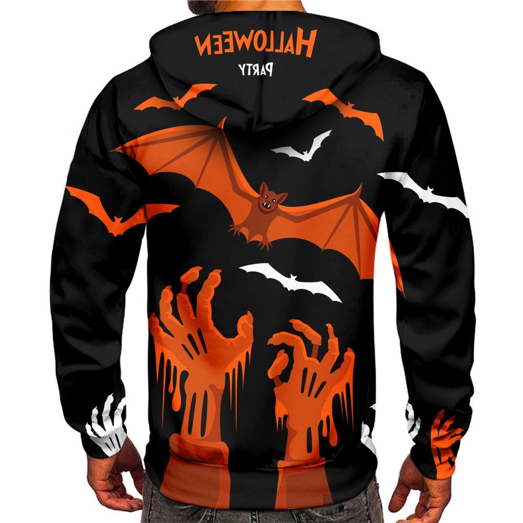 Осенний мужской свитер с цифровым принтом и большим капюшоном на Хэллоуин, новый большой базовый свитер