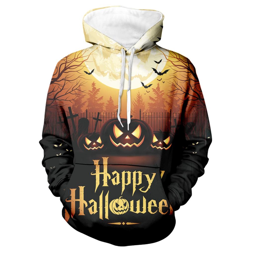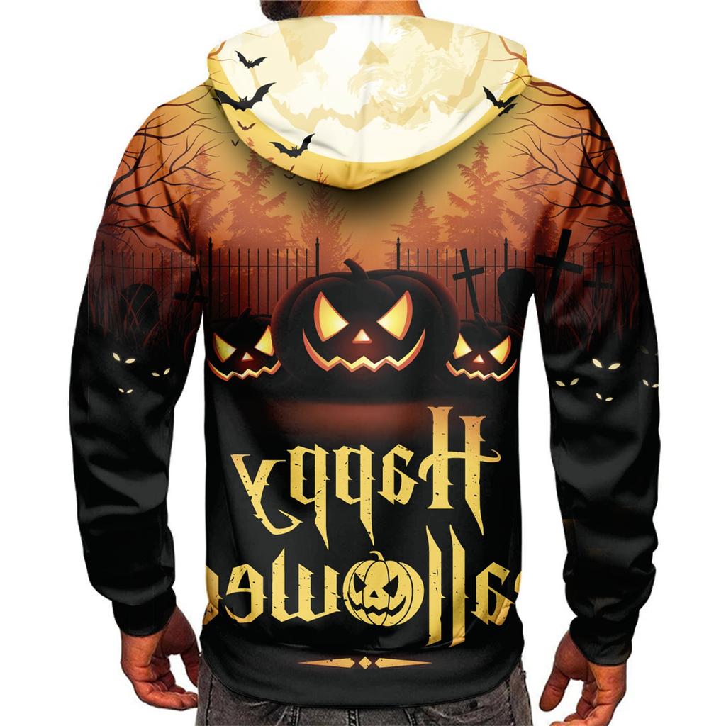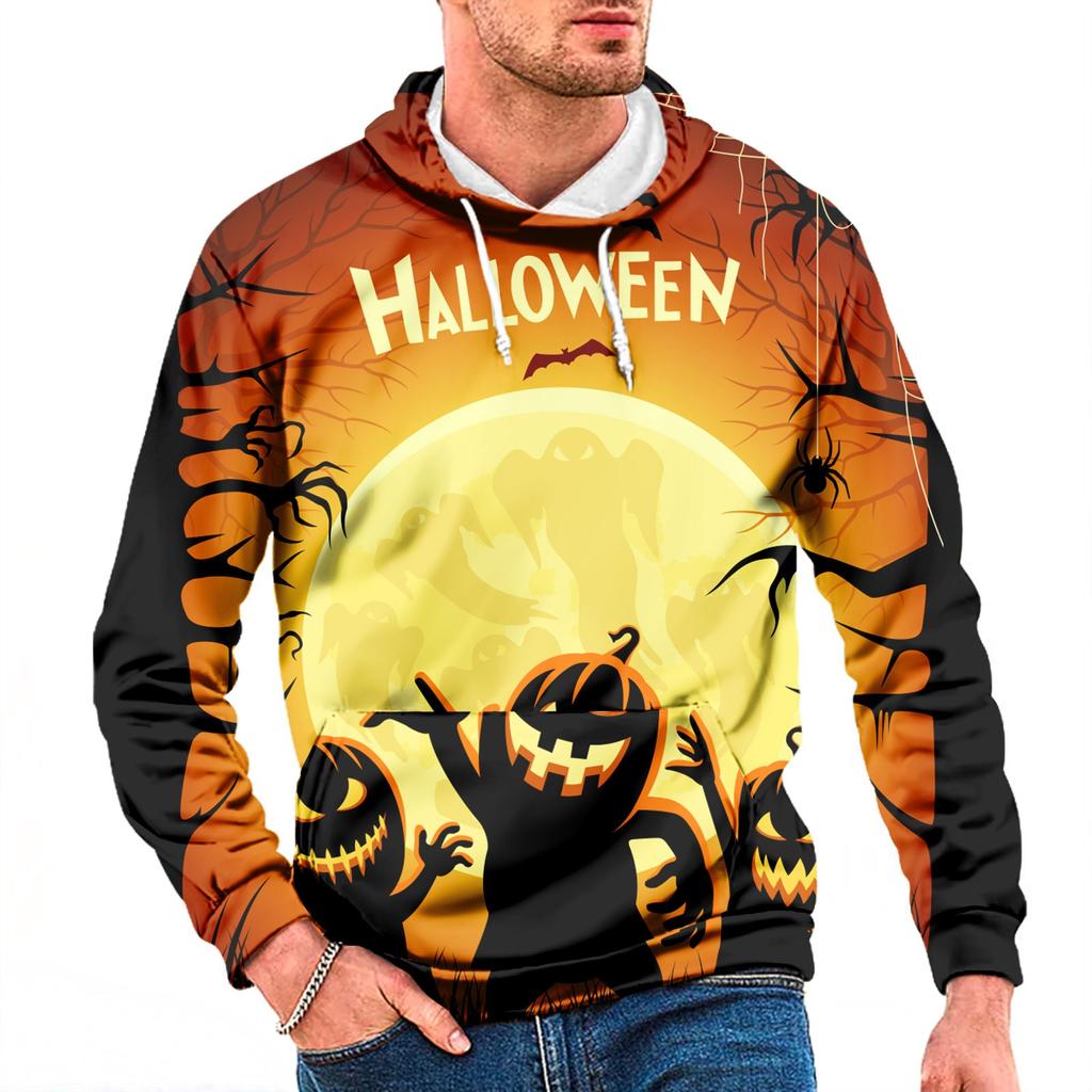 Осенний мужской свитер с цифровым принтом и большим капюшоном на Хэллоуин, новый большой базовый свитер