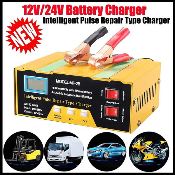 Широкие Приложения: он совместим с литиевой батареей 12,6 В или свинцово-кислотной батареей 12 В / 24 В, водяной батареей, необслуживаемой батареей, сухой батареей, гелевой батареей, солнечной батареей и т. Д.. Его можно использовать для зарядки скутера, мотоцикла, автомобиля, небольшого грузовика и многого другого.