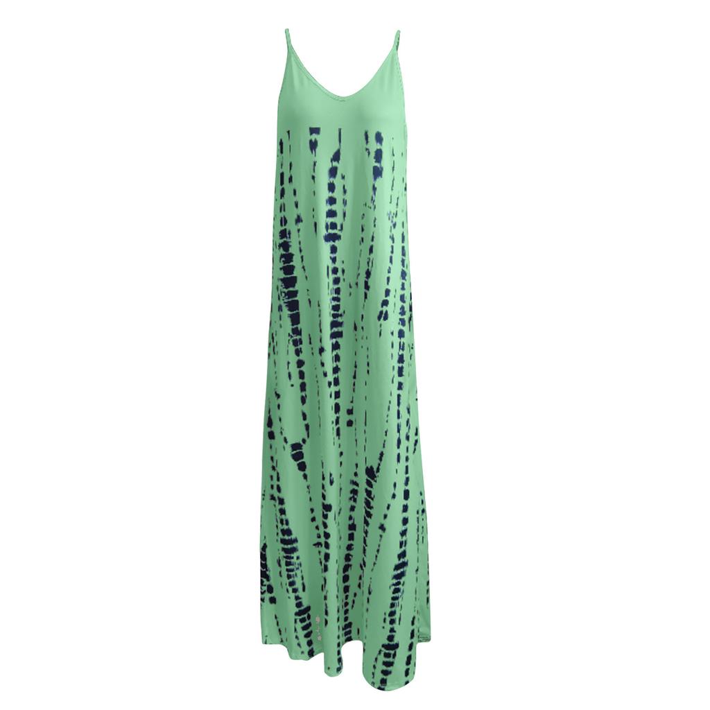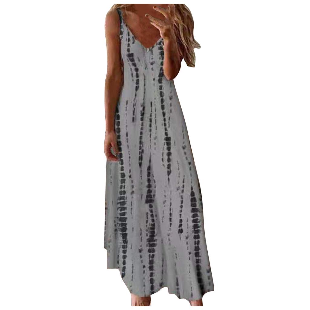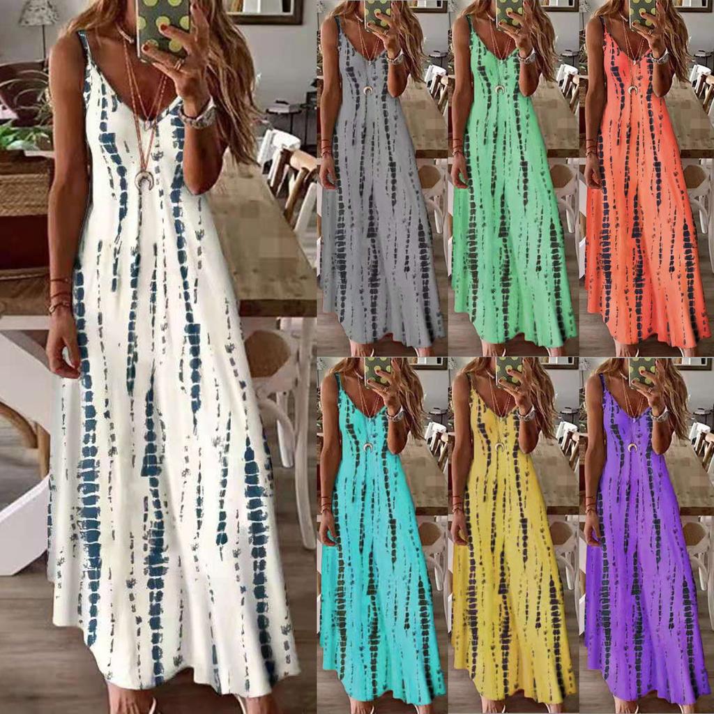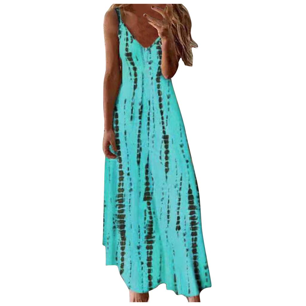 Новые летние женские свободные платья макси без рукавов с v-образным вырезом, повседневное длинное платье