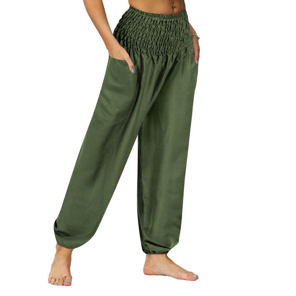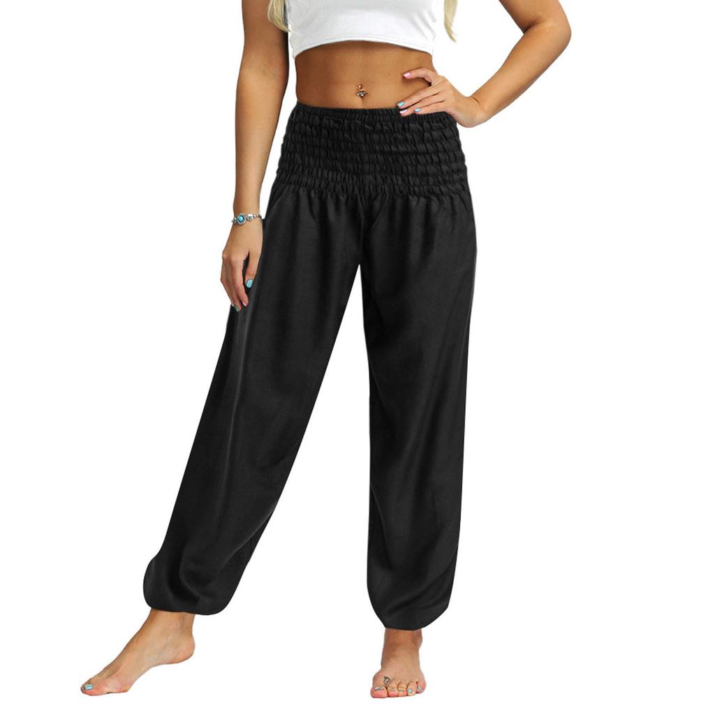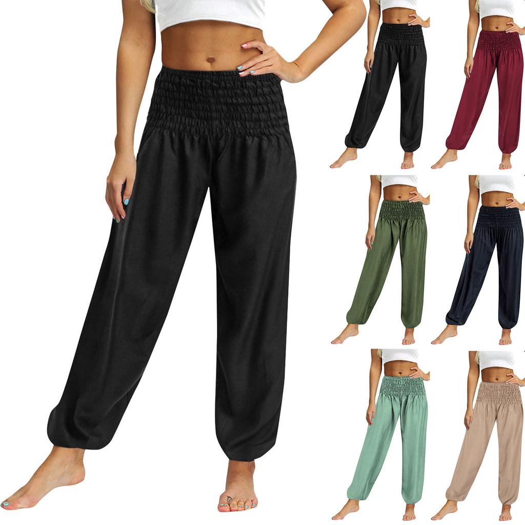Женские однотонные свободные повседневные дышащие танцевальные брюки с большой эластичной резинкой на талии для йоги