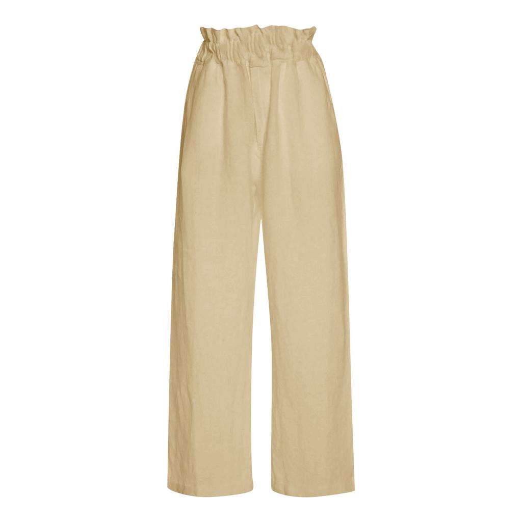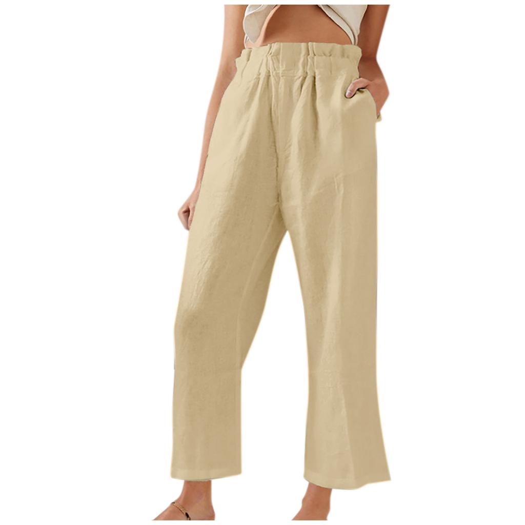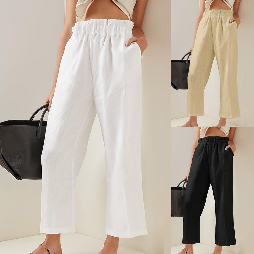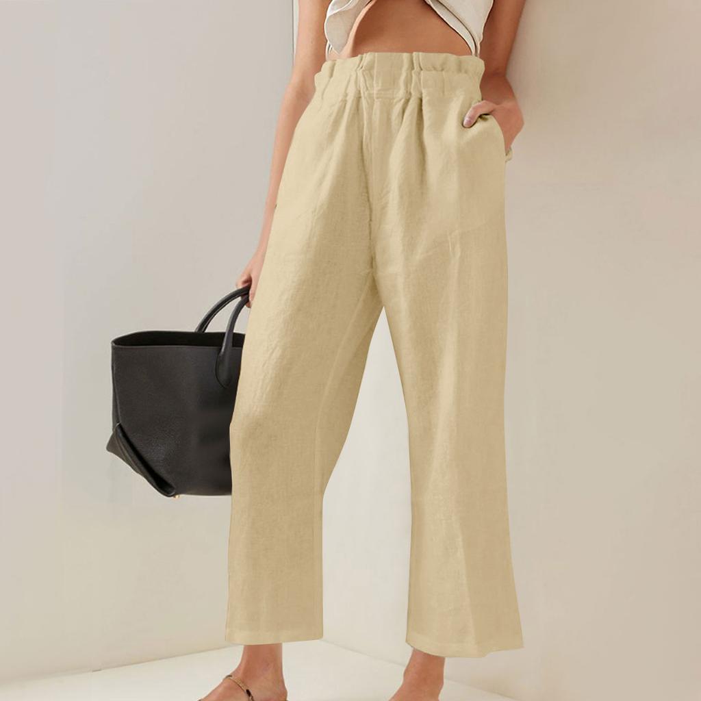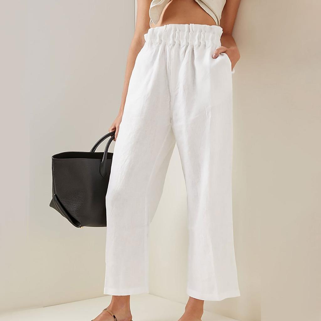Женские модные повседневные широкие брюки с эластичной резинкой на талии и карманами с рюшами