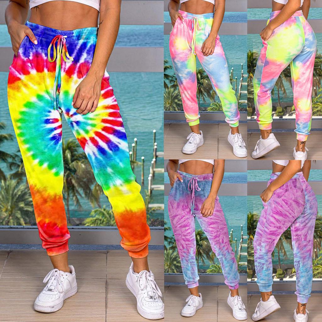 Модные женские повседневные спортивные штаны с эластичной резинкой на талии и принтом тай-дай — купить товар онлайн с бесплатной доставкой до всему миру!