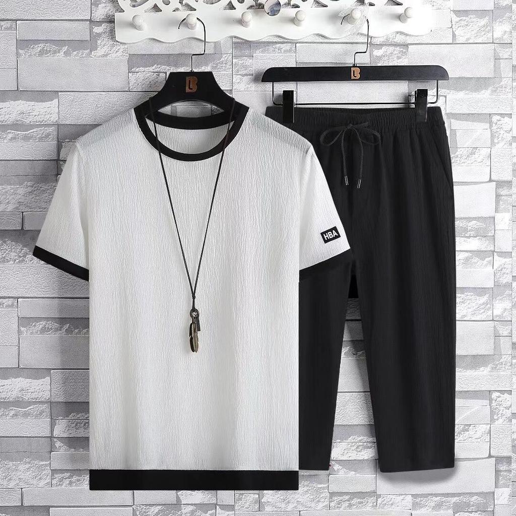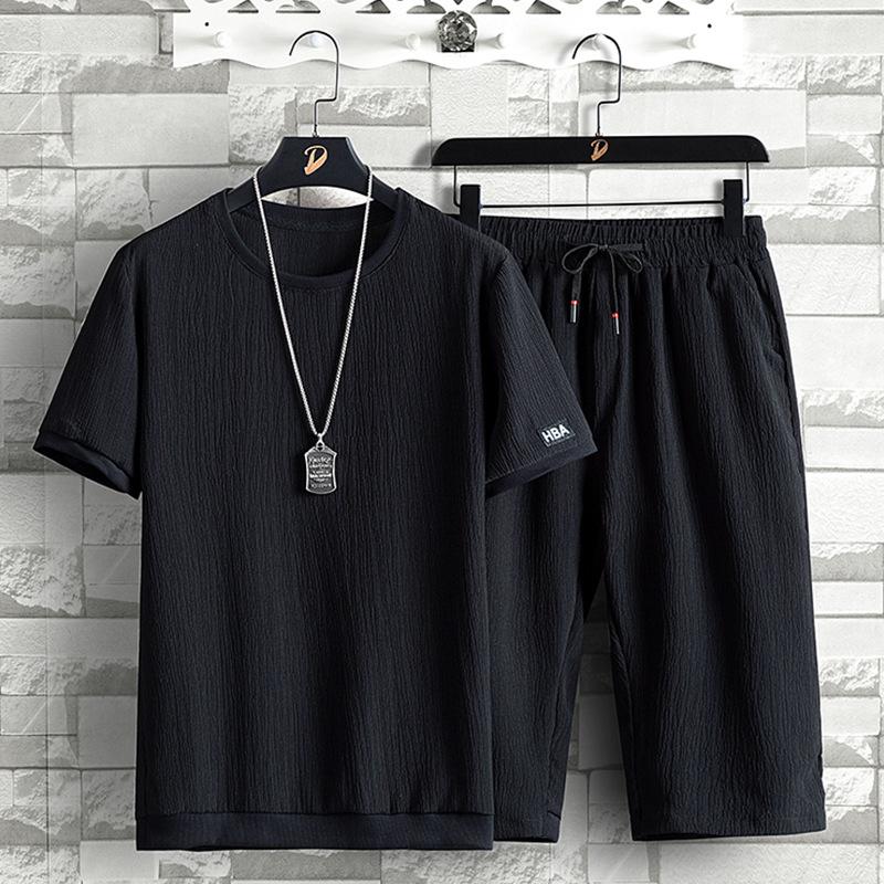 Мужской летний свободный спортивный костюм для отдыха большого размера, мужской костюм из 2 предметов с короткими рукавами и брюками