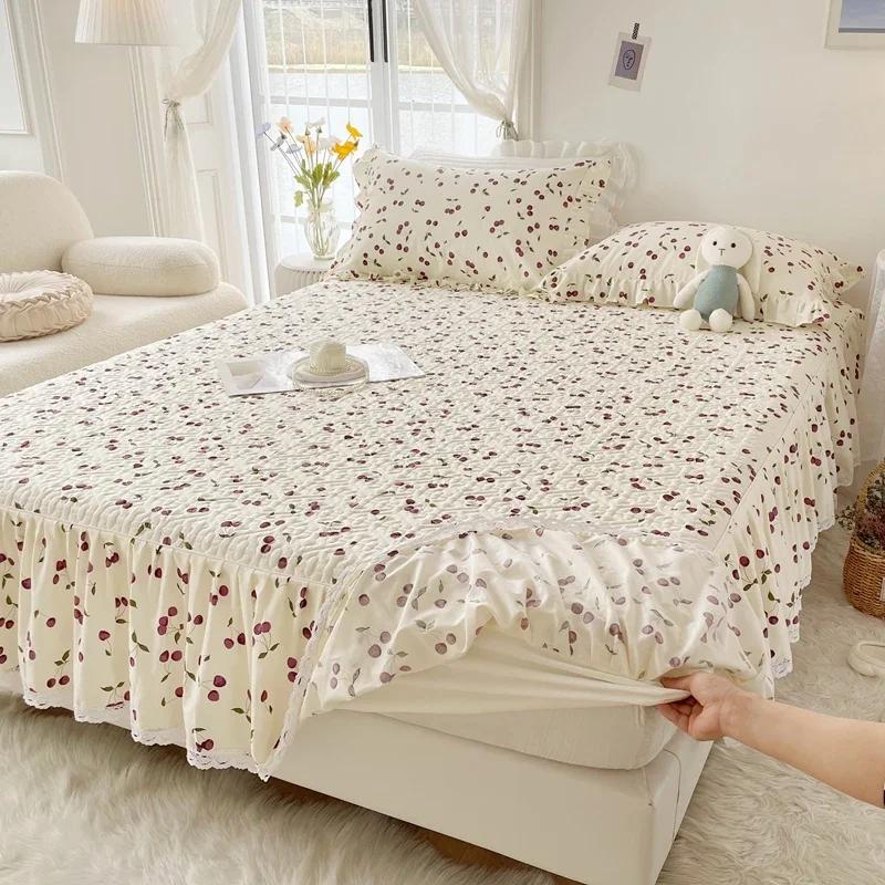1 шт., утолщенный стеганый наматрасник из чистого хлопка с юбкой, простыня Queen/King, юбка на резинке 200x220 см (Нет наволочки)
