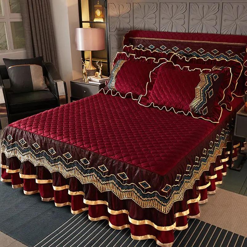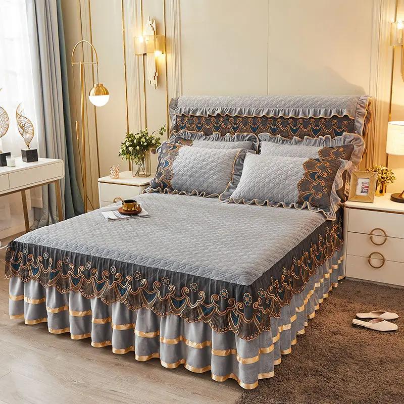 Роскошное зимнее бархатное стеганое покрывало с кристаллами, фланелевая юбка размера King Queen, не включая наволочку