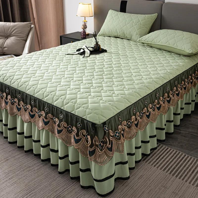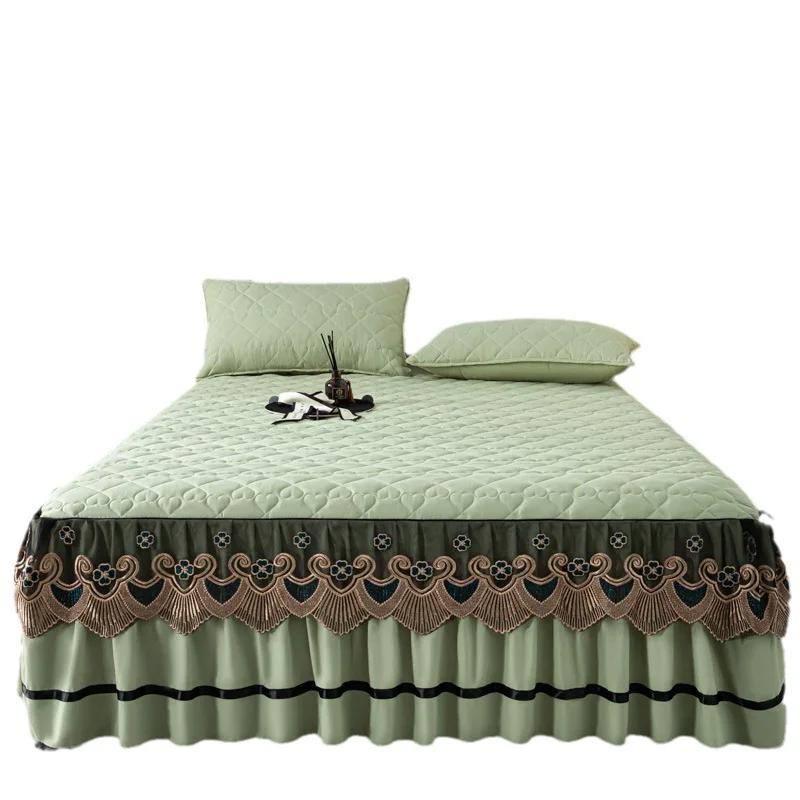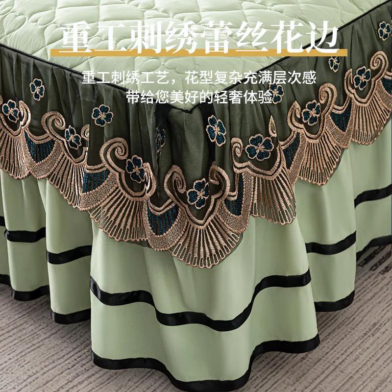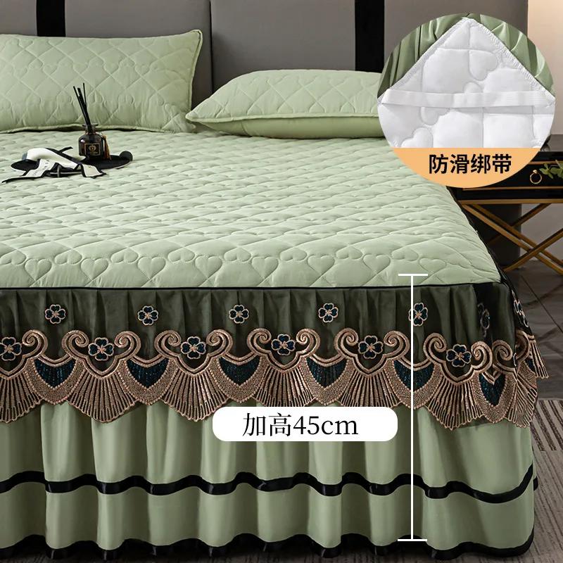 Кружевная юбка с золотой вышивкой, толстое стеганое покрывало в форме сердца с рисунком, домашние противоскользящие износостойкие простыни и чехлы