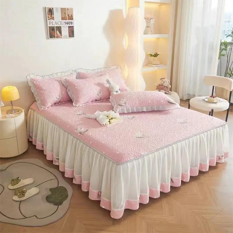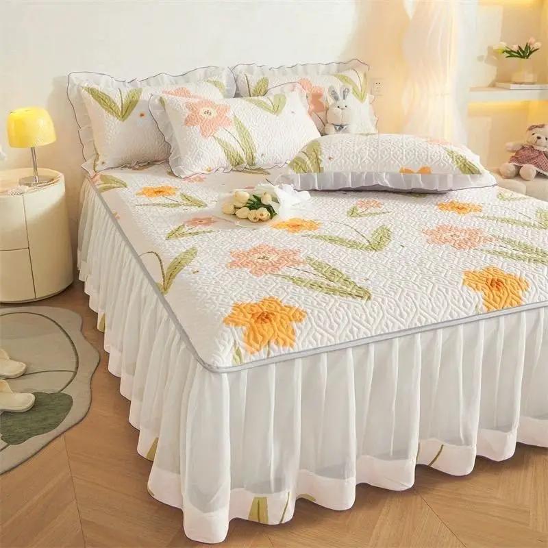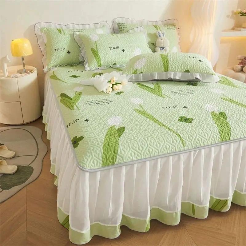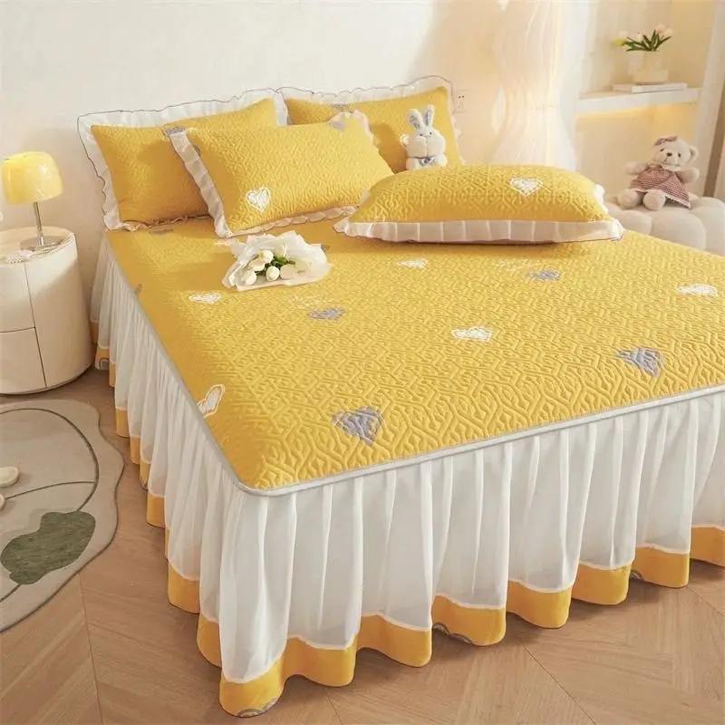 3 шт. сезонная универсальная стеганая юбка-кровать прозрачная марлевая юбка противоскользящее покрывало утолщенный матрас защитное постельное белье