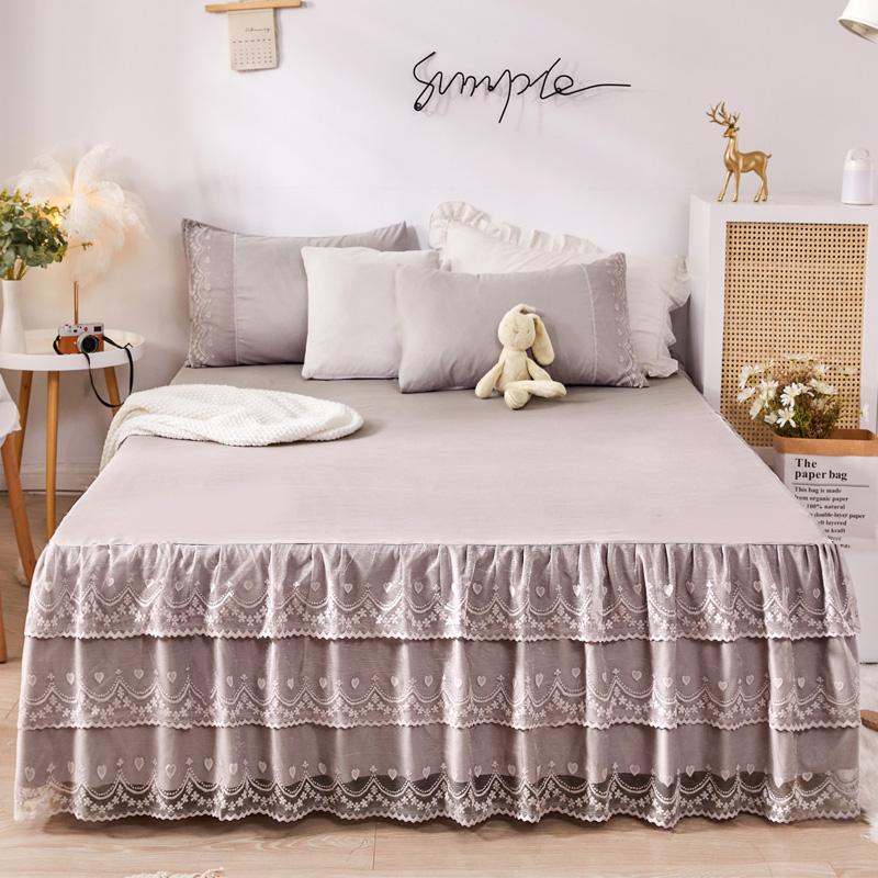 Bonenjoy Кровать юбка однотонный покрывало кружевной стиль покрывало falda de cama дружественный для кожи протектор матраса (Нет наволочки)