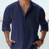 Мужская свободная однотонная льняная рубашка с длинным рукавом и воротником-стойкой, повседневные мужские белые, черные рубашки для мужчин, блузка