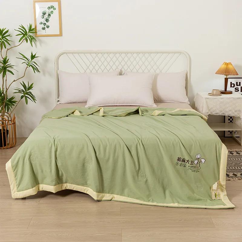 Двухслойное летнее одеяло из хлопка и льна нового класса А, летнее одеяло из стираного хлопка и льна, воздухопроницаемый чехол