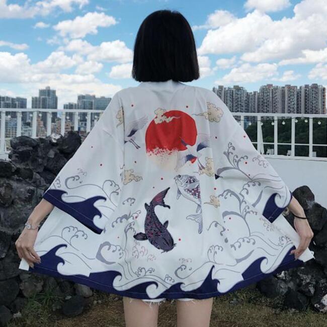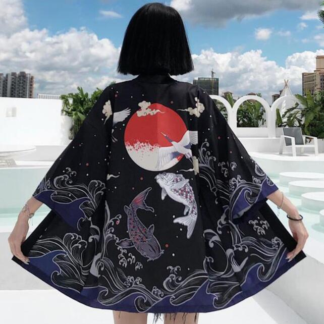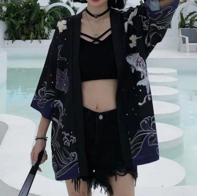 Новый японский кимоно Harajuku с цифровой печатью, пончо, пижамный кардиган