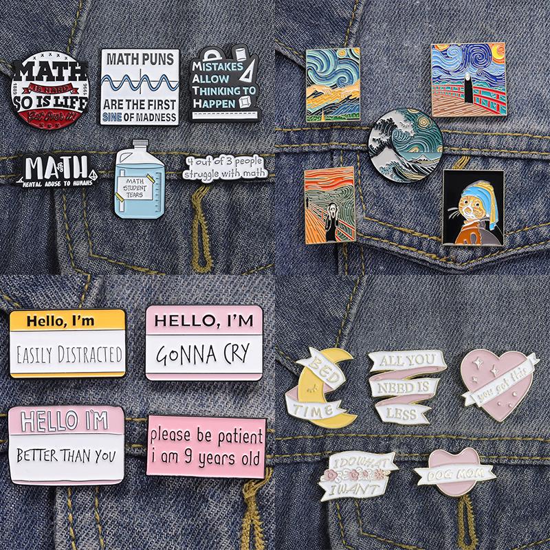 3 ~ 6 шт./компл., набор эмалированных булавок, милый кот, цитата, письмо, математика, картина маслом, брошь с изображением животных для мальчиков, значок на лацкане, женские и мужские ювелирные изделия — купить товар онлайн с бесплатной доставкой по всему миру!