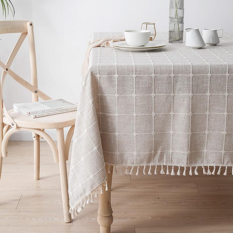 Жаккардовая клетчатая скатерть, хлопково-льняная с кисточками пыленепроницаемая крышка стола, для ужина, свадьбы, квадратный декор столешницы