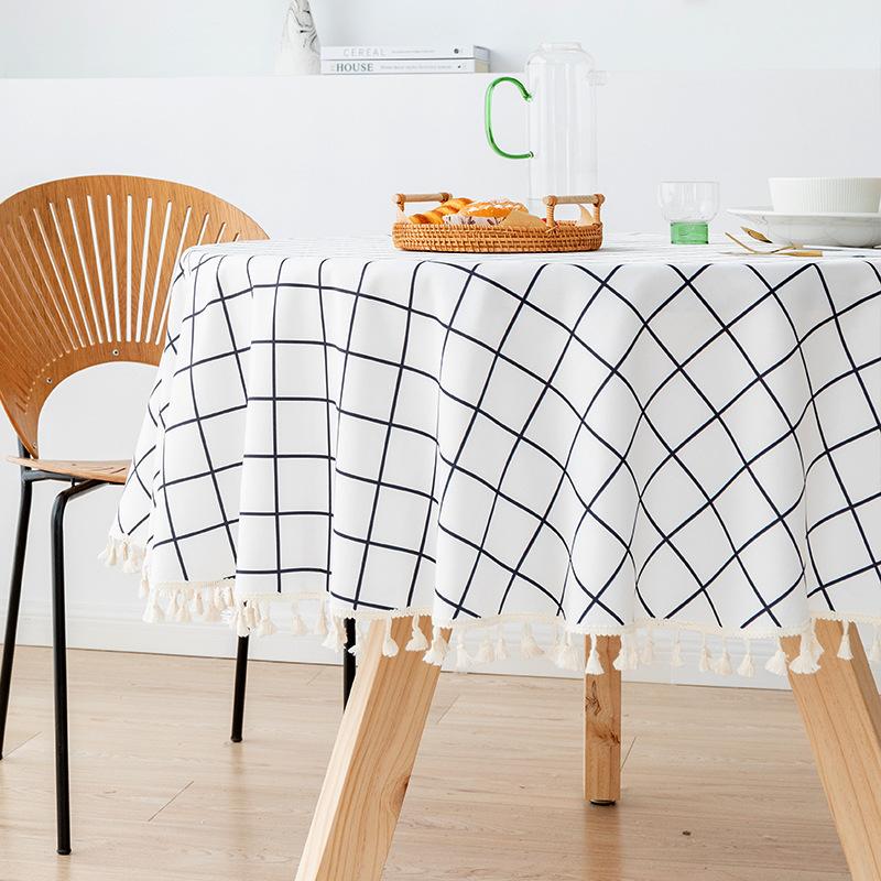 Круглая скатерть из хлопка и льна с принтом в клетку, водонепроницаемая, маслостойкая, термостойкая, скатерть для кофейного, кухонного, обеденного стола — купить товар онлайн с бесплатной доставкой по всему миру!