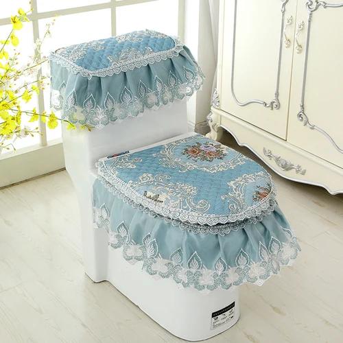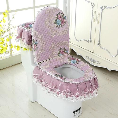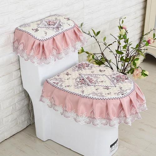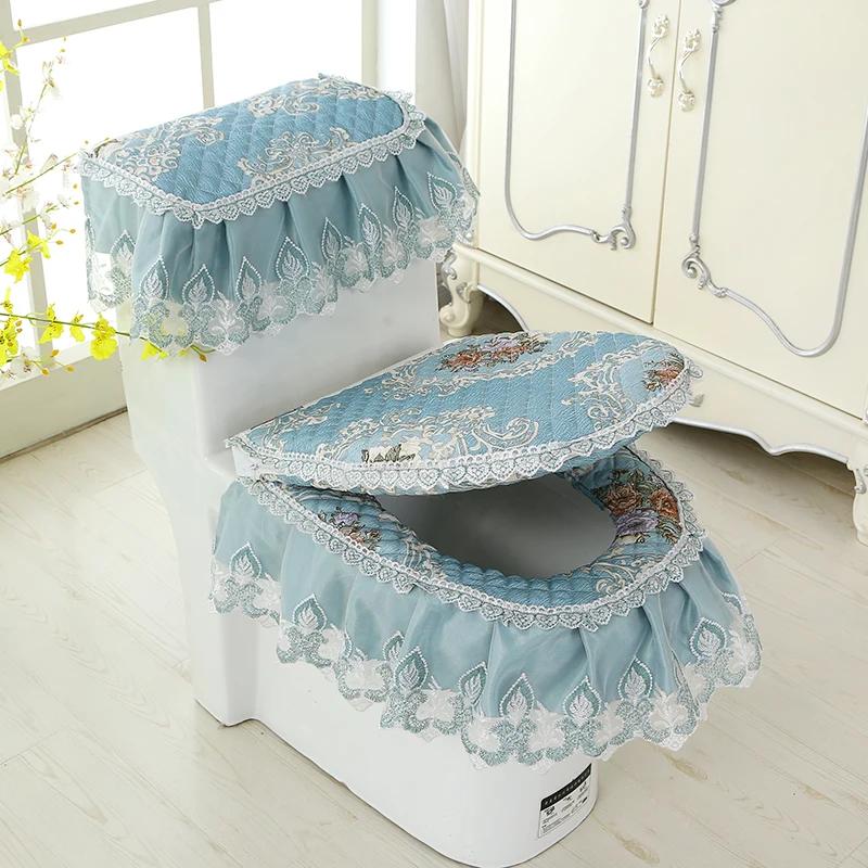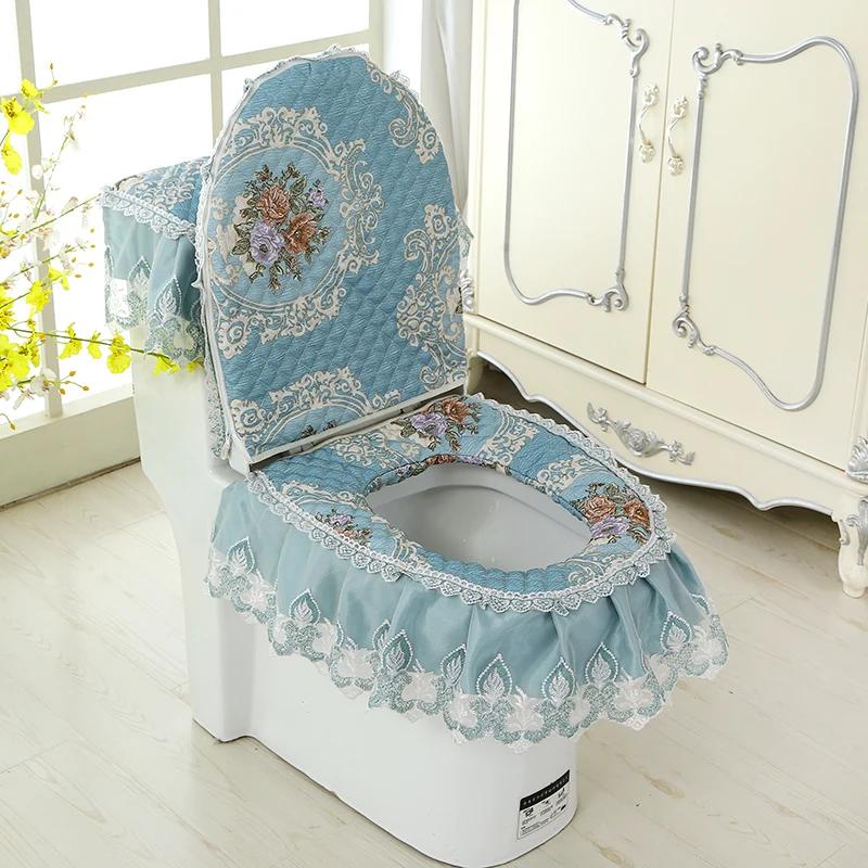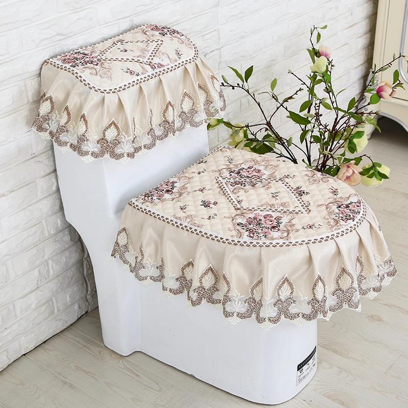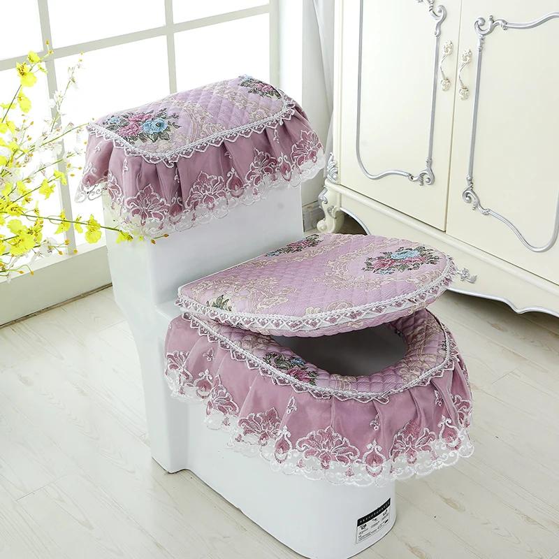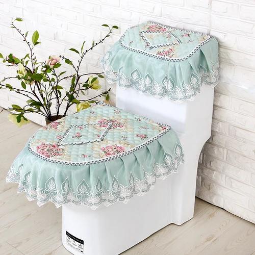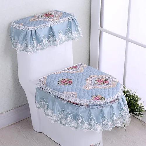 Бытовая подушка на сиденье унитаза, комплект из трех предметов, кружевной тканевый коврик для унитаза, европейский стиль, цветы, крышка на сиденье унитаза