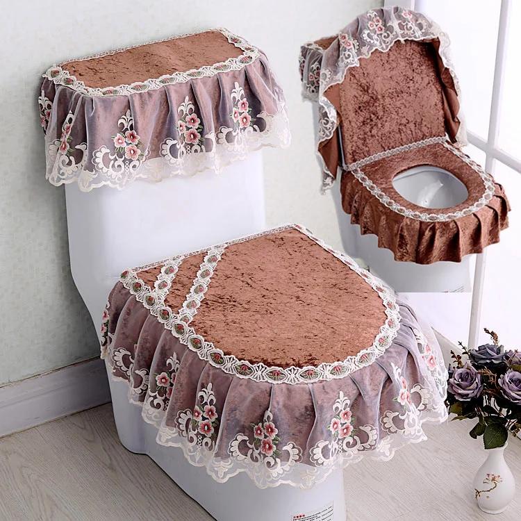 3 шт./компл. чехол на сиденье унитаза, крышка резервуара для туалетной воды, пылезащитные чехлы, подушка на сиденье унитаза, съемный тканевый чехол для унитаза