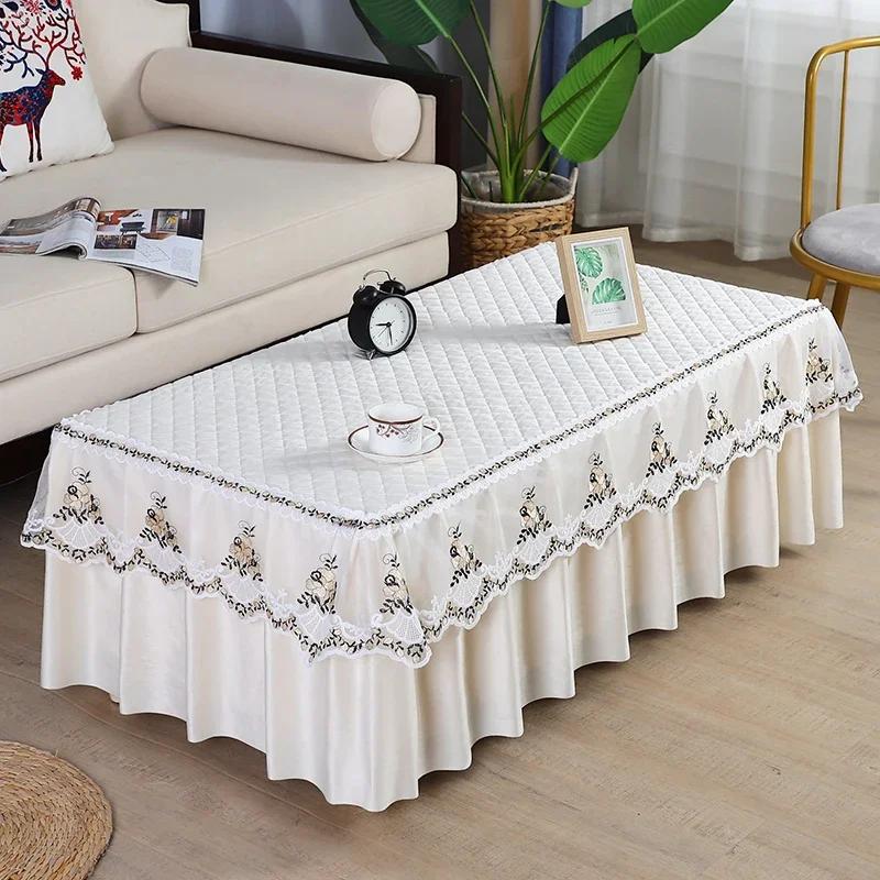 Противоскользящая толстая клетчатая крышка для стола, вышитая кружевная юбка по краю, скатерть по краю, плюшевая прямоугольная домашняя чайная скатерть, пылезащитный чехол