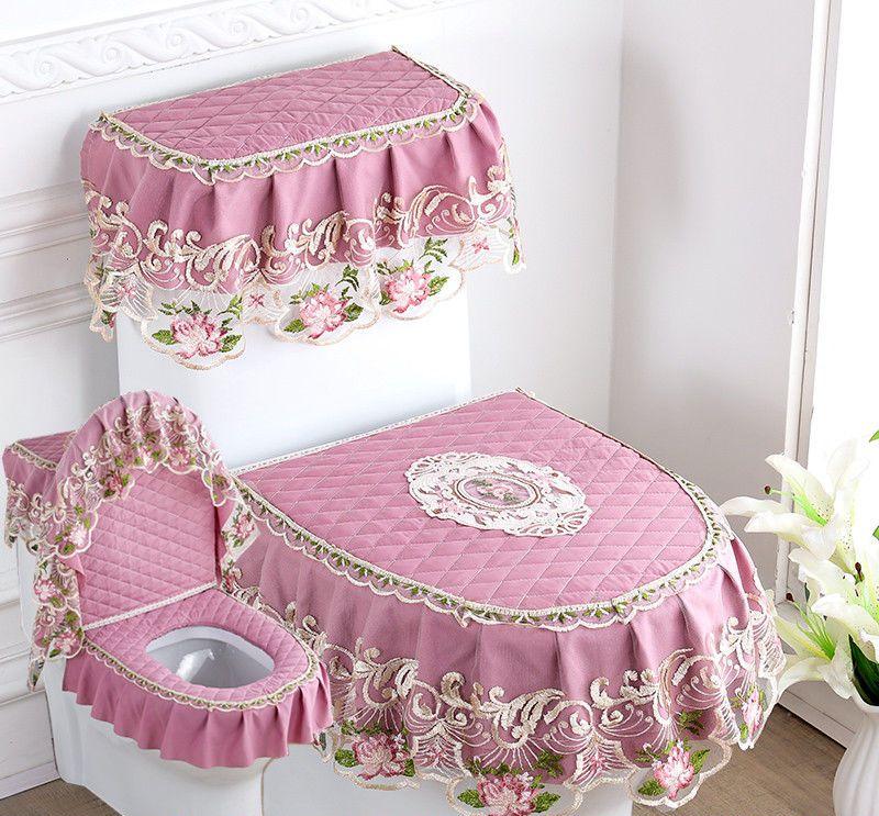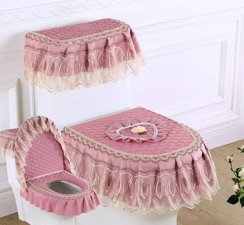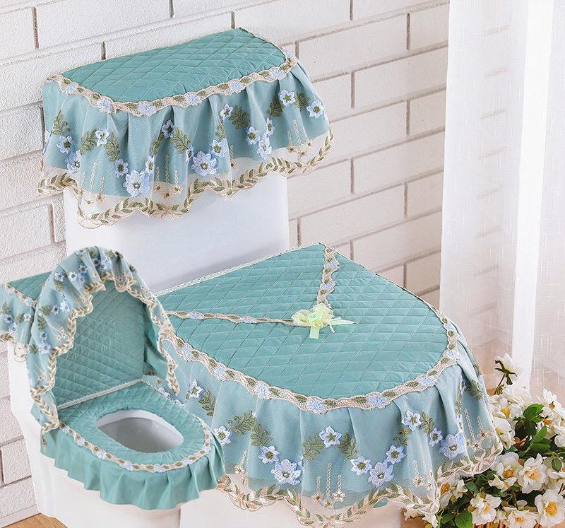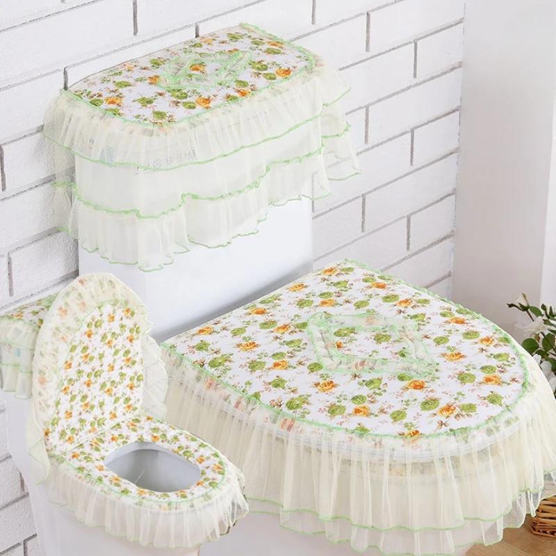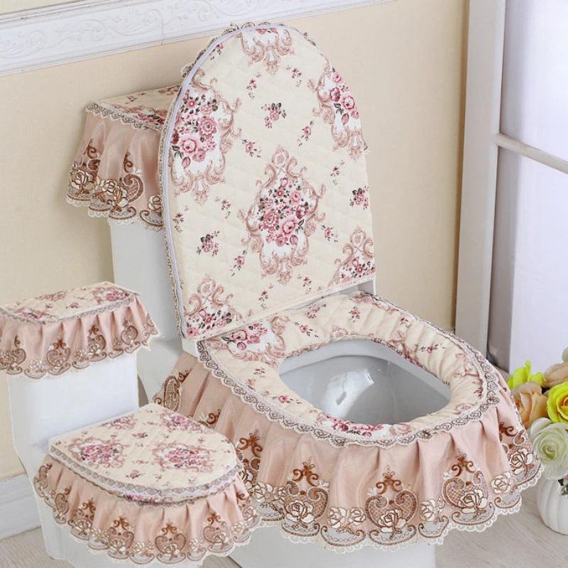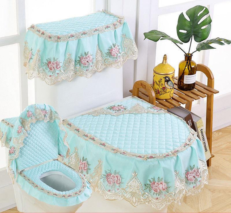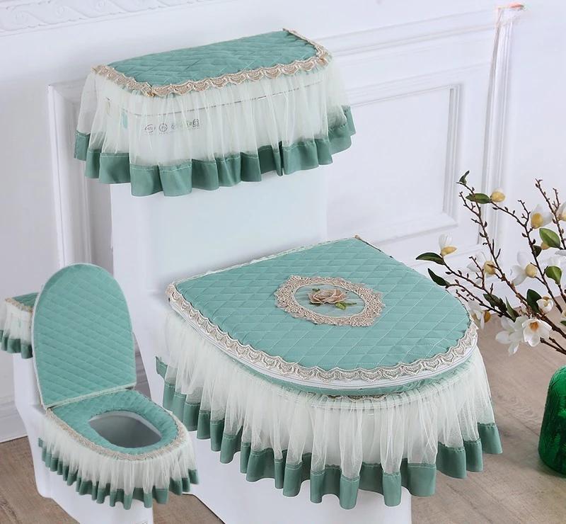 3 шт./компл. съемный чехол для унитаза с кружевной вышивкой, ткань пылезащитная мягкая подушка для сиденья унитаза, украшение для дома, чехол для унитаза