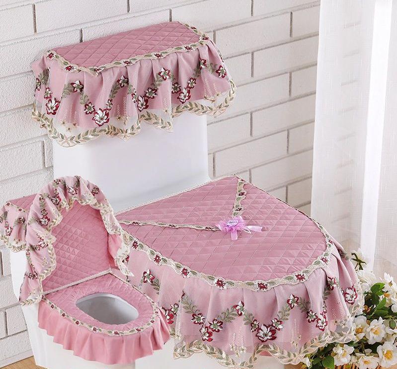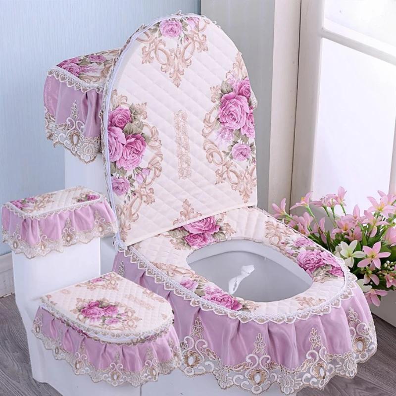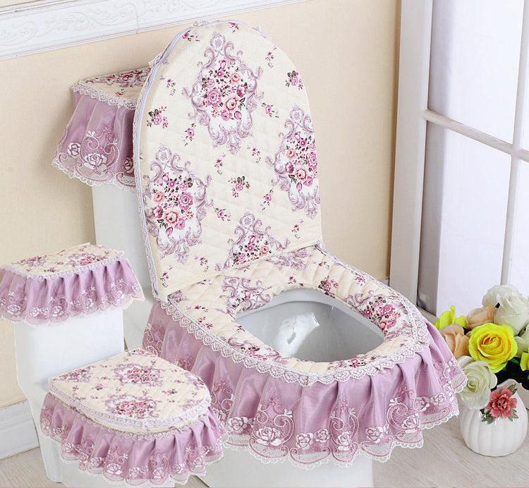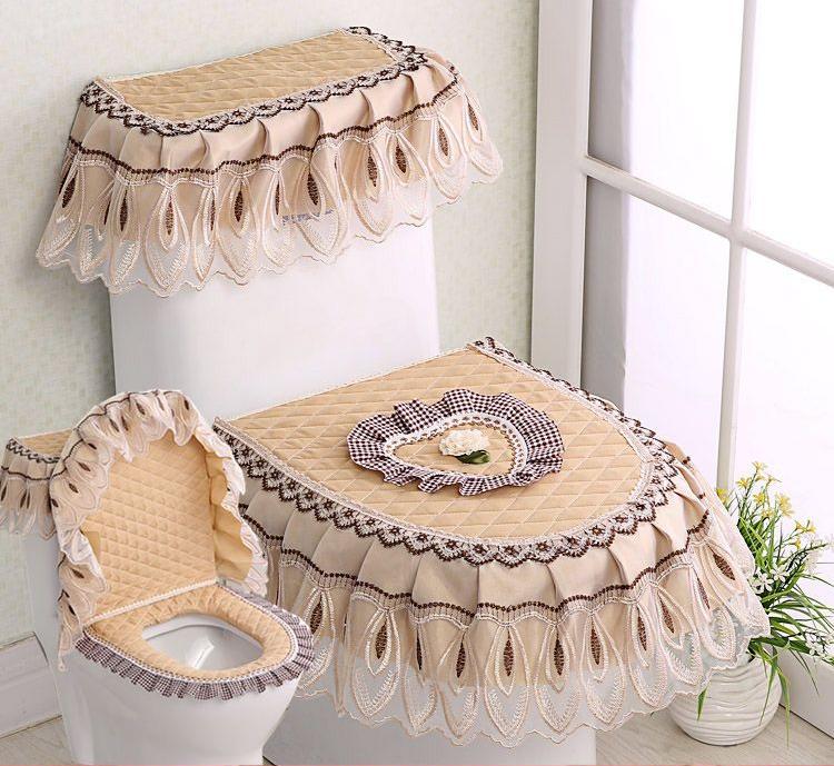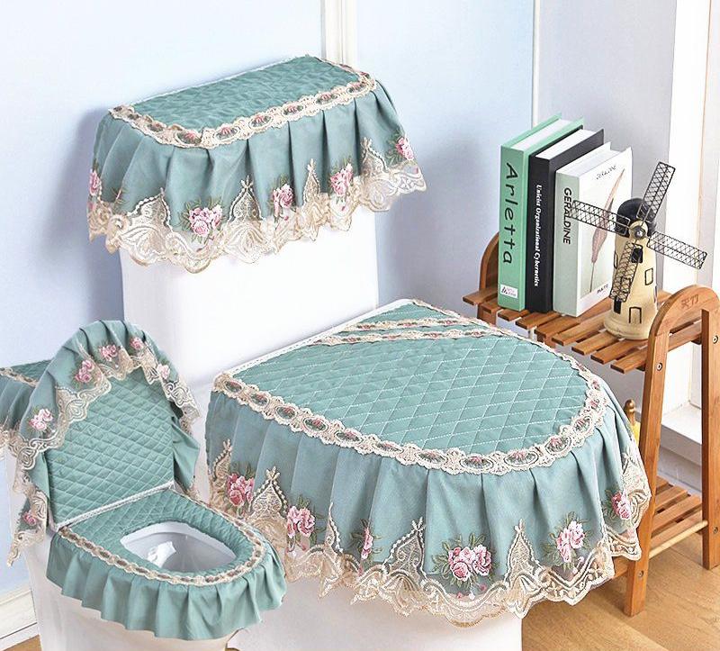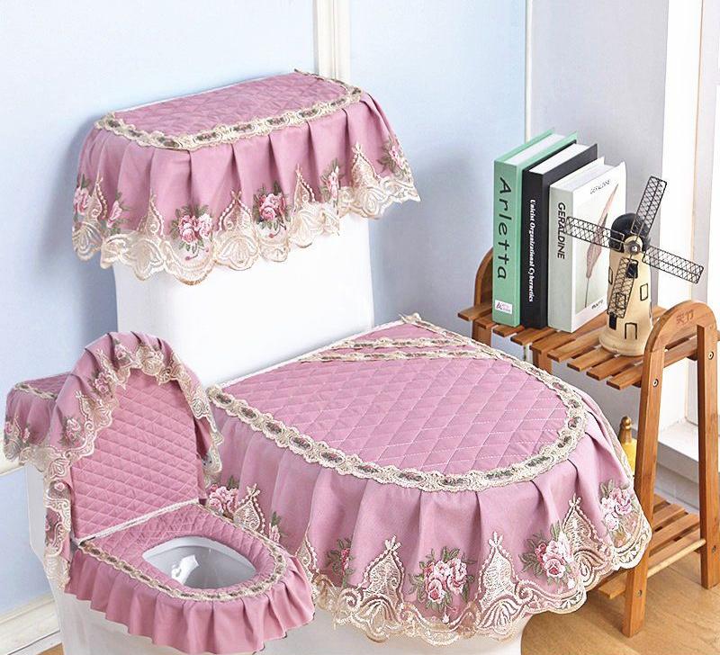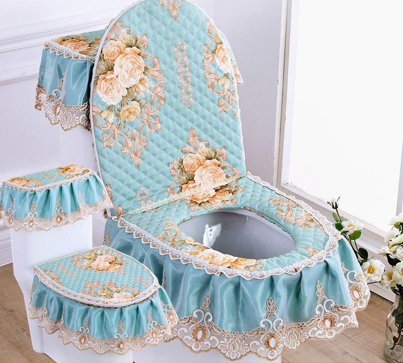 3 шт./компл. съемный чехол для унитаза с кружевной вышивкой, ткань пылезащитная мягкая подушка для сиденья унитаза, украшение для дома, чехол для унитаза