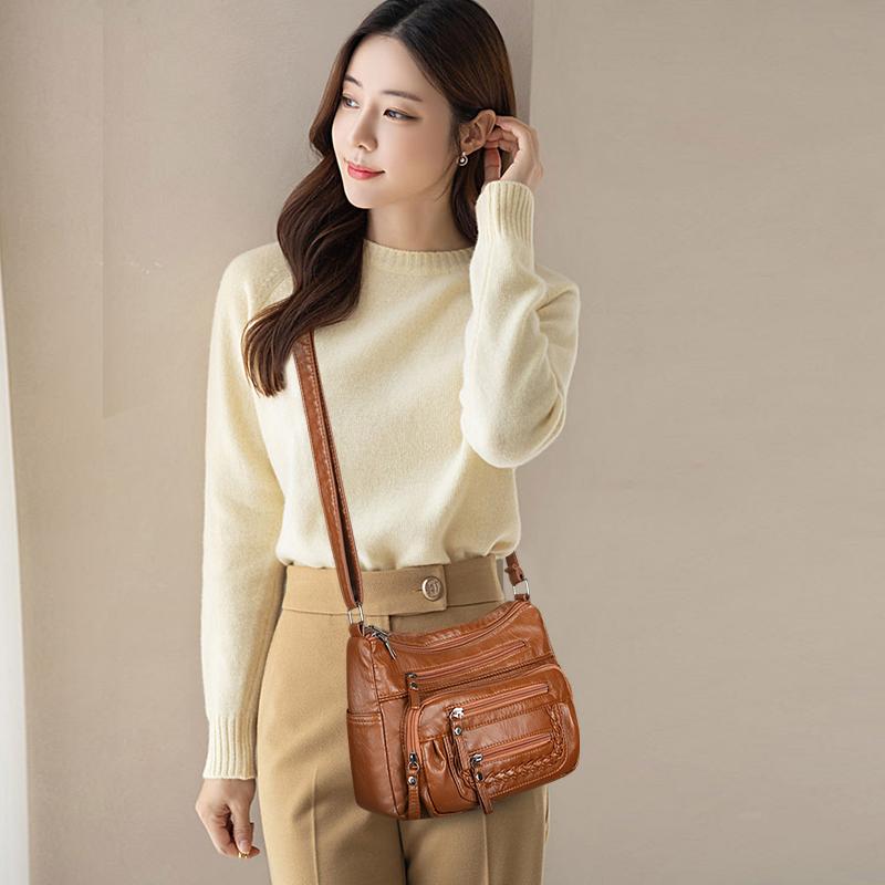 Женская сумка, многослойная сумка через плечо из мягкой кожи, сумка для матери