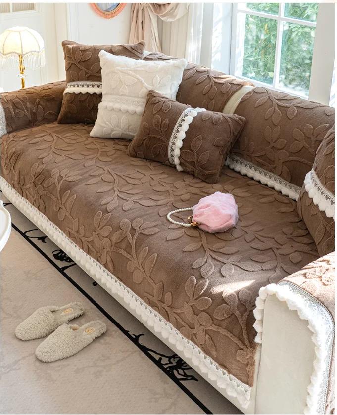 Французский короткий плюшевый жаккардовый коврик для дивана, утолщенный зимний противоскользящий кружевной край, диванное полотенце, сиденья для гостиной, чехлы для диванов, наволочки