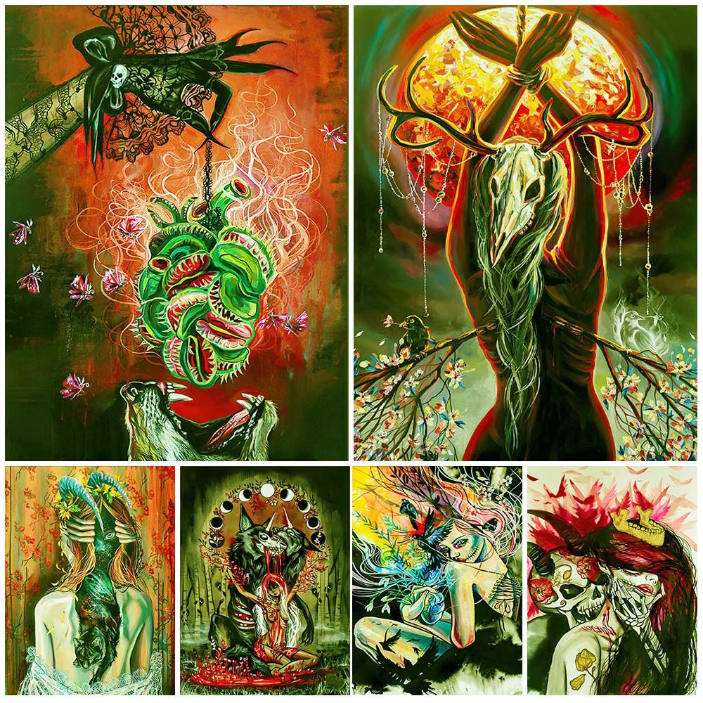 Готическое Созвездие Ведьмы Сюрреалистическое Искусство Принт Череп Декор Стены Искусства Холст Живопись Домашний Декор Жуткий Де Викка Плакат Принт Без Рамки