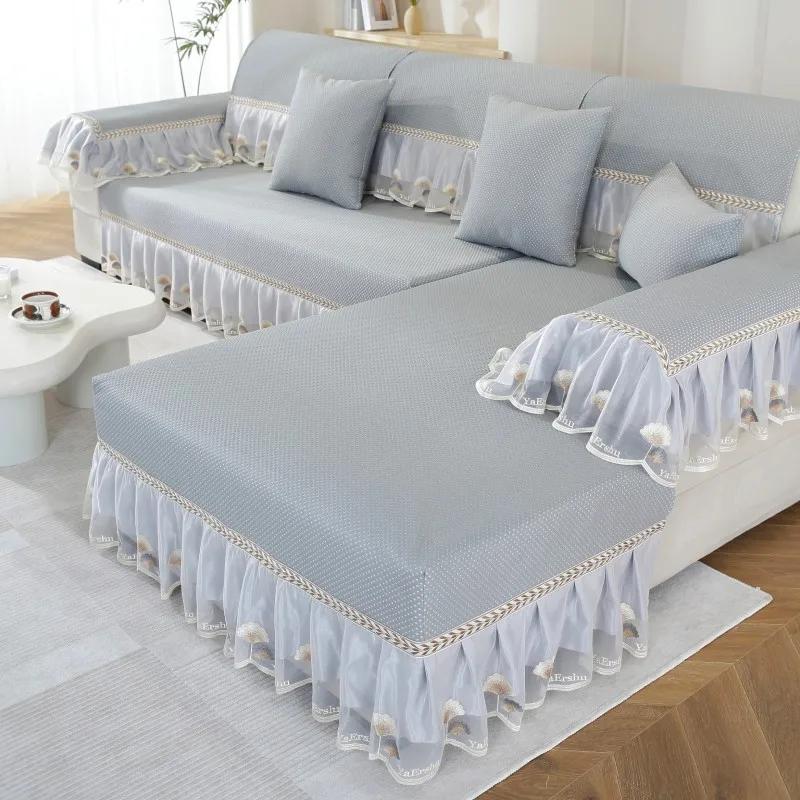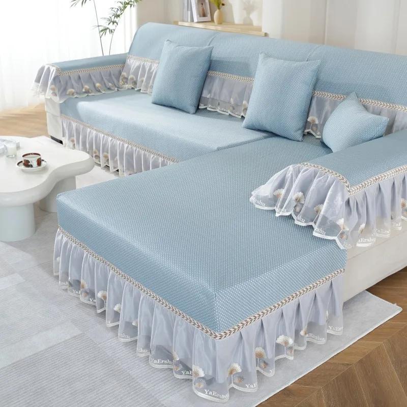 Летняя прохладная подушка на диван из ледяного шелка Удобный охлаждающий коврик Дышащая нескользящая подушка для сиденья Минималистичный чехол на диван с юбкой Подушка с оборкой
